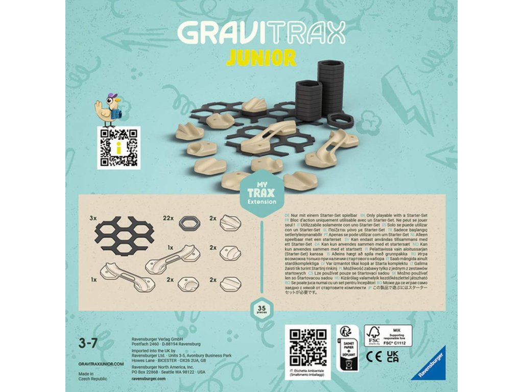 GraviTrax Junior je interaktivní systém kuličkové dráhy pro děti od 3 let. Ti nejmenší si staví své vlastní světy z kuličkových drah, které lze podle libosti zdobit a vytvářet tak jednotlivé tematické světy. Děti si tak při kreativním stavění užijí mnoho zábavy. Chlapci a dívky si mohou stavět své vlastní světy z kuličkových drah, které lze podle libosti zdobit a vytvářet tak jednotlivé tematické světy.