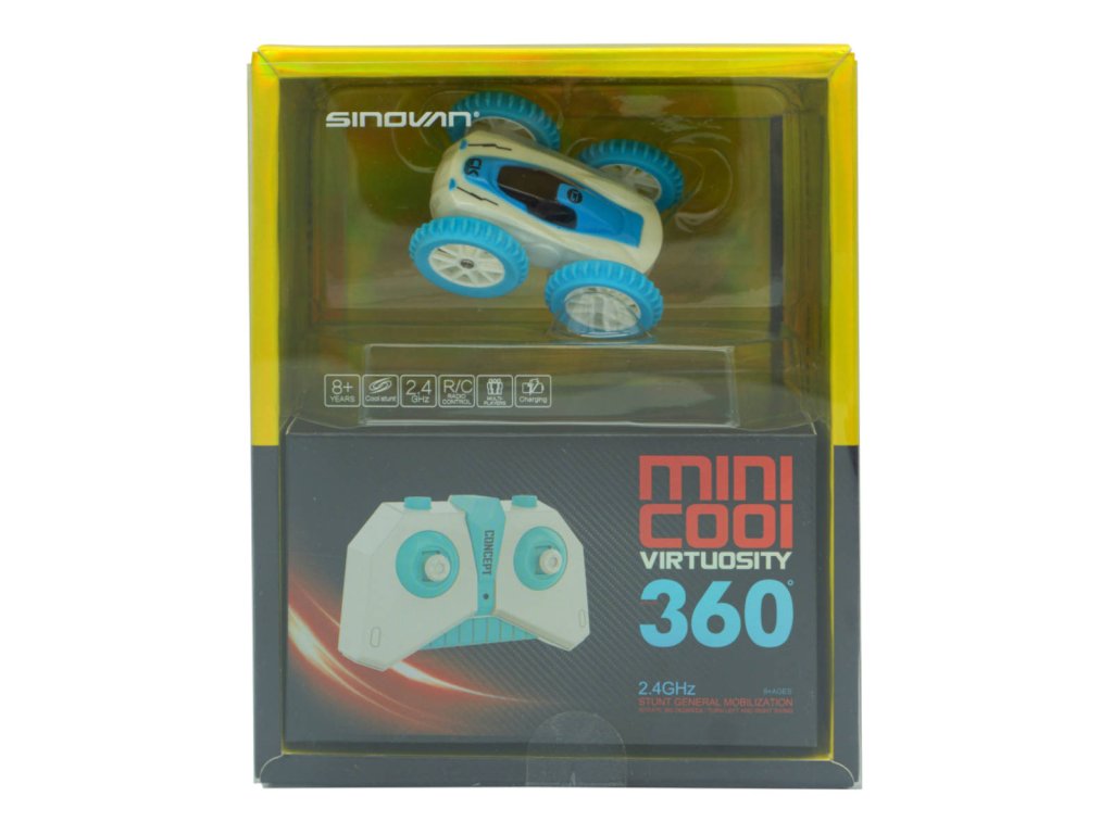 Kaskadérské mini auto na dálkové ovládání s radiovou frekvencí. Zažijte spoustu zábavy s úžasnými auty na ovládání, které Vás ohromí skvělými triky a rychlostí. Balení obsahuje autíčko s akumulátorovou baterií, USB kabel pro snadné nabíjení, dálkový ovladač na baterie s dosahem 12 m. Doba nabíjení je cca 15 min, doba hry 10 min. Vhodné na hladké a čisté povrchy. Funkce: jízda vpřed, couvání, zatáčení, točení na místě, přetáčení o 360 stupňů.