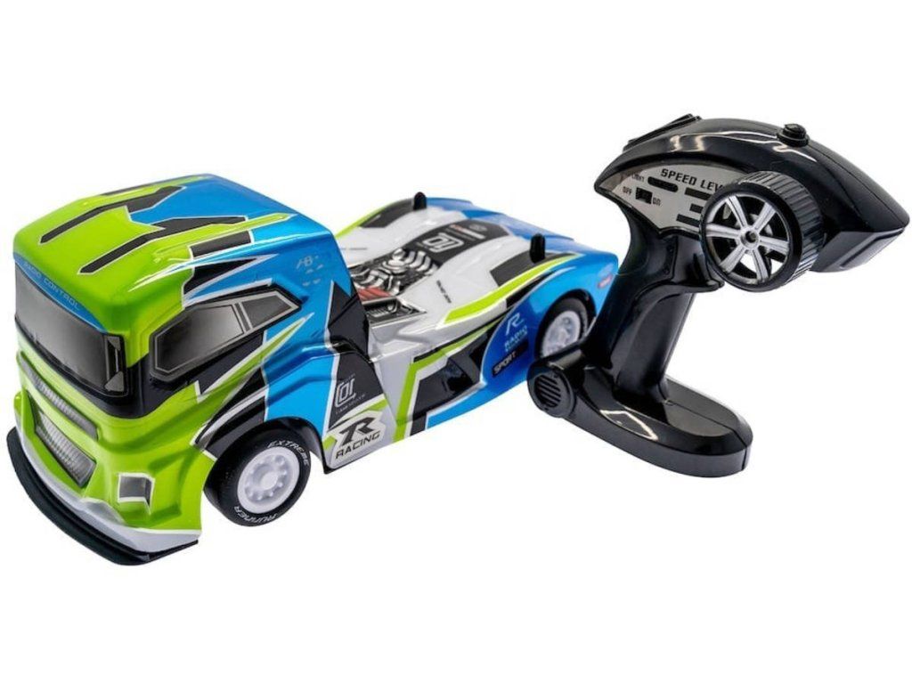 RC Auto závodní tahač na dálkové ovládání. Funční přední světla, absorbční tlumiče na obou nápravách, realistický vzhled, 3 rychlosti, frekvence 2,4GHz, 2 barevné varianty. Hračka na baterie, se světlem.
