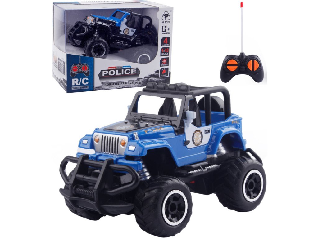 Policejní džíp na velkých kolech, na dálkové ovládání, pro všechny malé policisty, kteří milují akci. Radio control model (RC) - Auto rádiem řízené. Auto na dálkové ovládání musí mít doma každý kluk! Je to dobrodružství a vzrušení z řízení auta, které je ale naprosto bezpečné a zdraví neškodné.