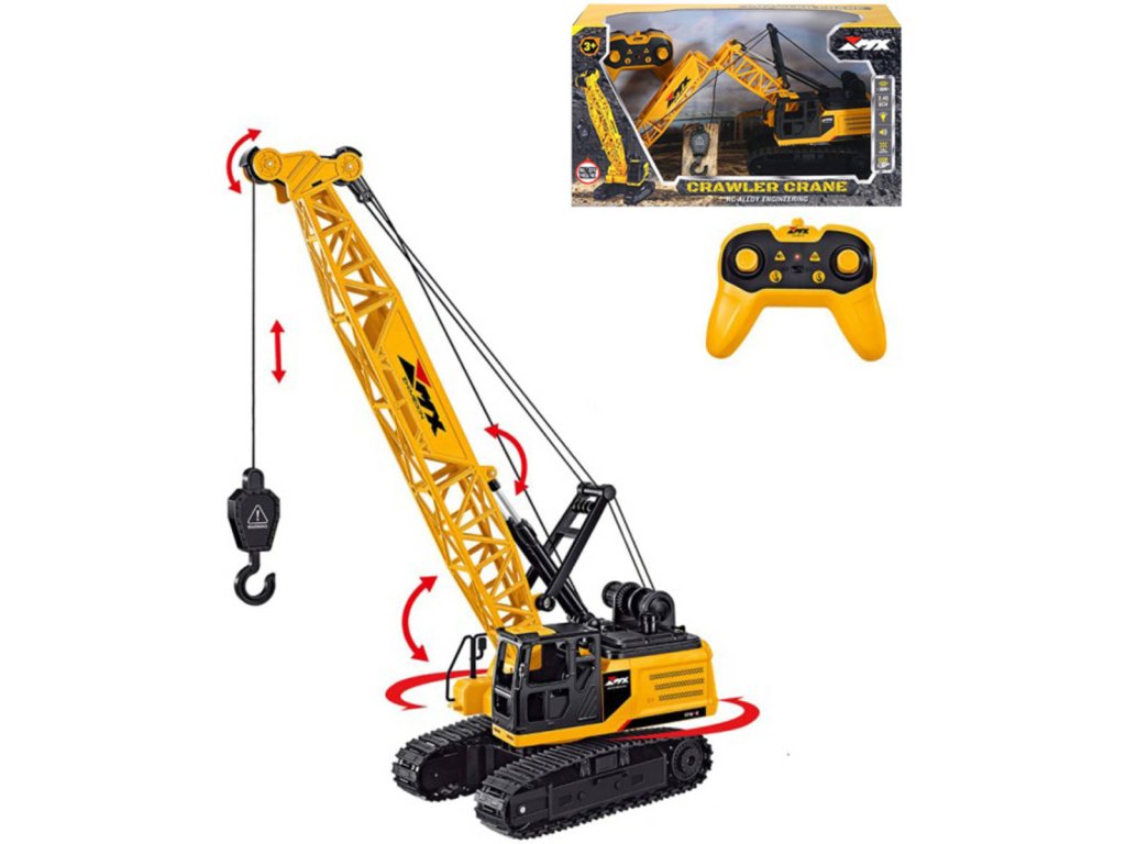 RC žlutý stavební pásový jeřáb na dálkové ovládání, na baterie, se světlem a zvukem. Plná funkce, frekvence: 2,4GHz.