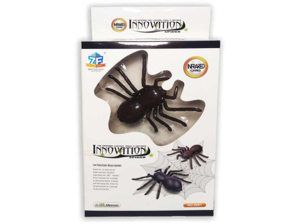 Pavouk na dálkové ovládání pomocí infrared. Balení obsahuje pavouka a ovladač. Pavouk má svítící oči. Jezdí vpřed, vzad, vlevo, vpravo.
