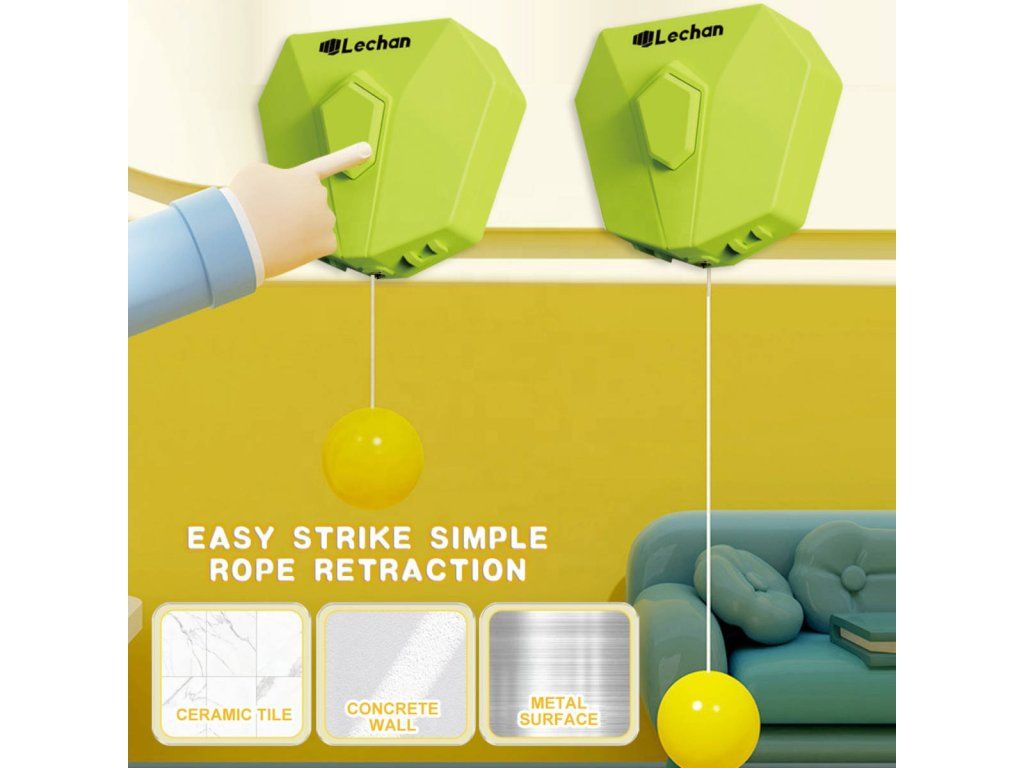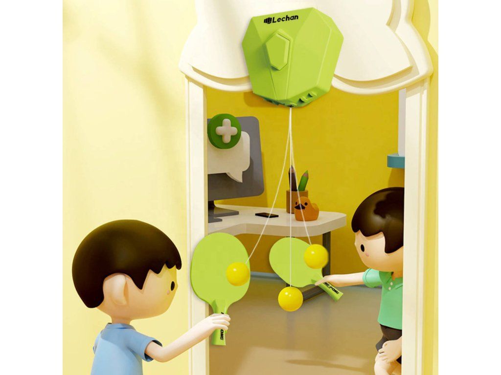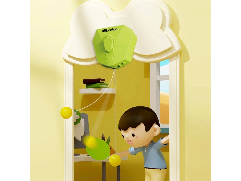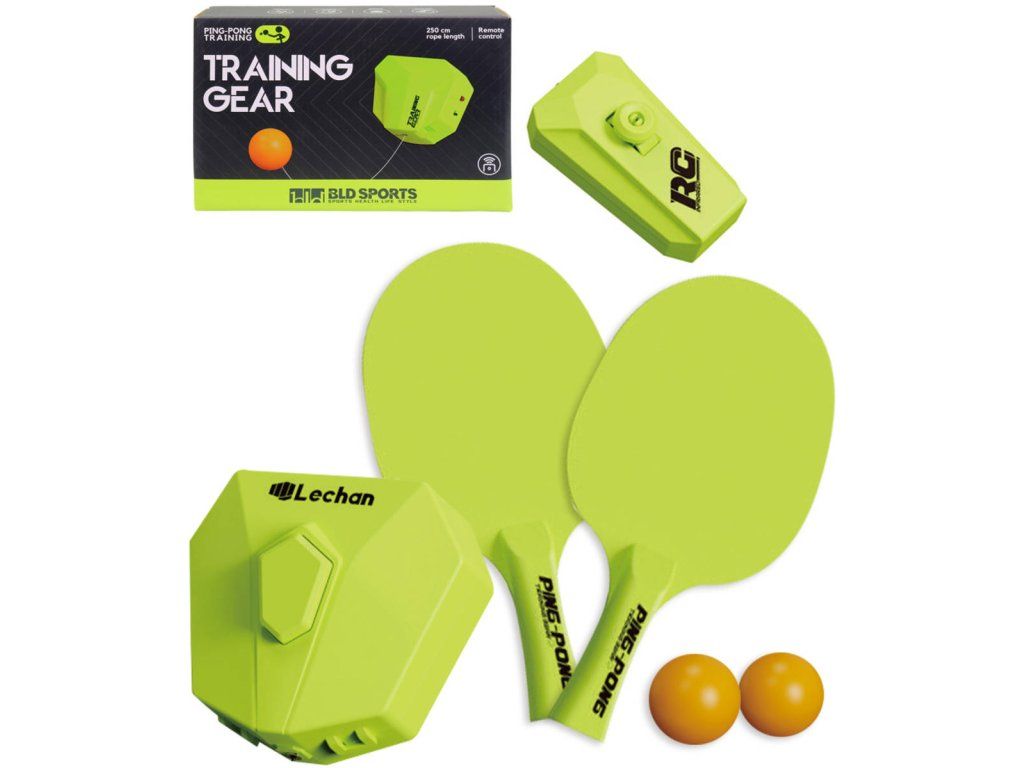 RC Závěsný Ping-pong osobní trenér na stolní tenis. Součástí 2 zelené pálky s míčky a dálkové ovládání pro nastavení délky lanka (max. 250cm). Hračka na baterie.