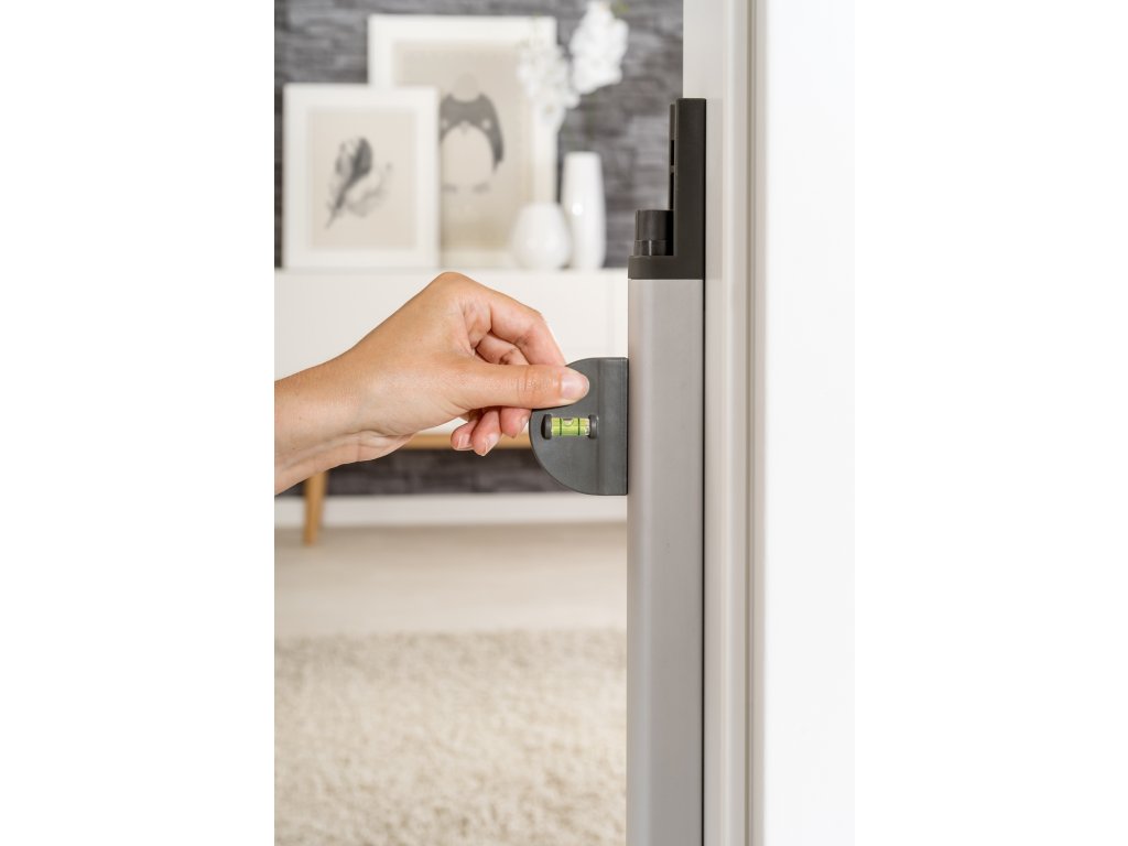 Instalační systém pro bezpečnostní zábrany Trend (č. art.: 46011) a ClearVision (č. art.: 46021) Vám umožňuje efektivní využití zábrany na více místech Vaší domácnosti. Jeho instalace je snadná a nevyžaduje žádné pracné měření. Navíc lze EasyFix připevnit také před vchod do dveří, díky čemuž nepoškodíte dveřní rám.