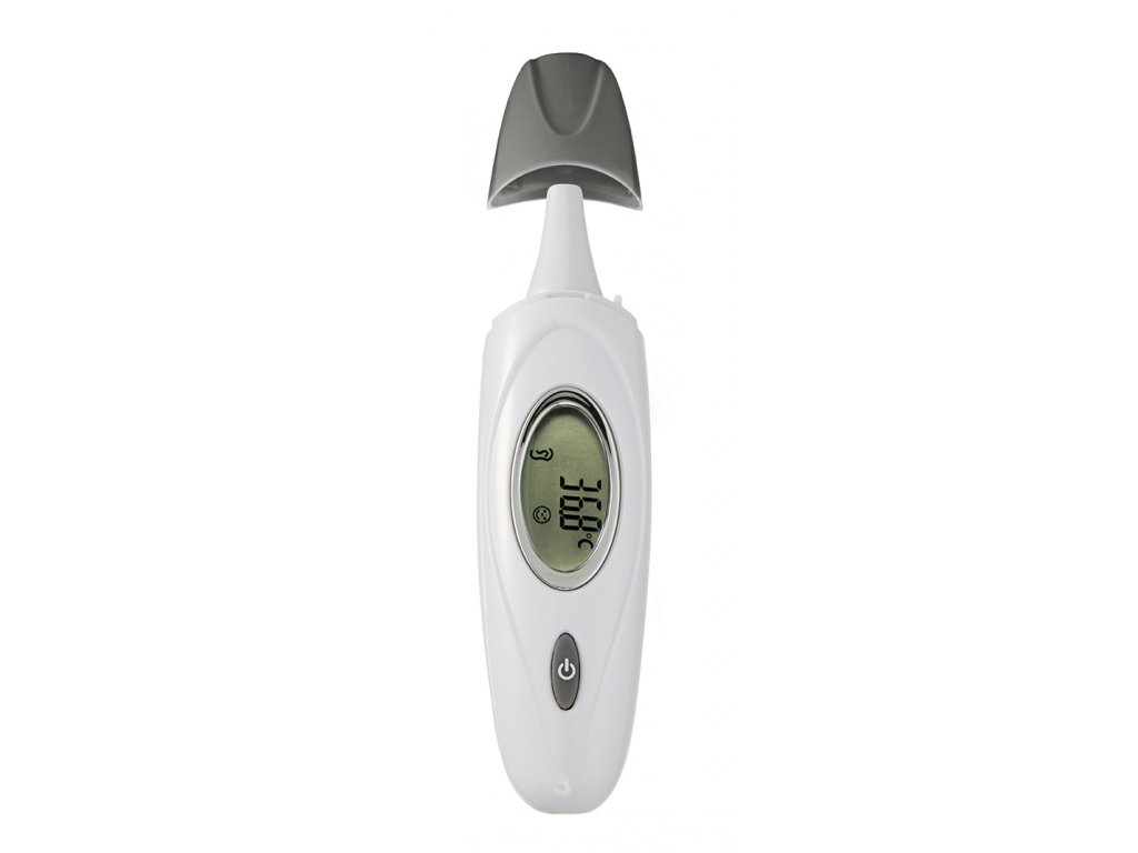 Teploměr lze využít nejen pro měření tělesné teploty, ale také teploty materiálu nebo okolního prostředí. Díky odnímatelnému nástavci lze teplotu těla snímat jak z ucha, tak i ze spánku měřené osoby. Optické a zvukové značení běžné a zvýšené tělesné toploty, společně s jediným tlačítkem umožňují velice jednoduchou obsluhu. Navíc má teploměr paměť až na 19 měření a zobrazuje aktuální nastavený čas.