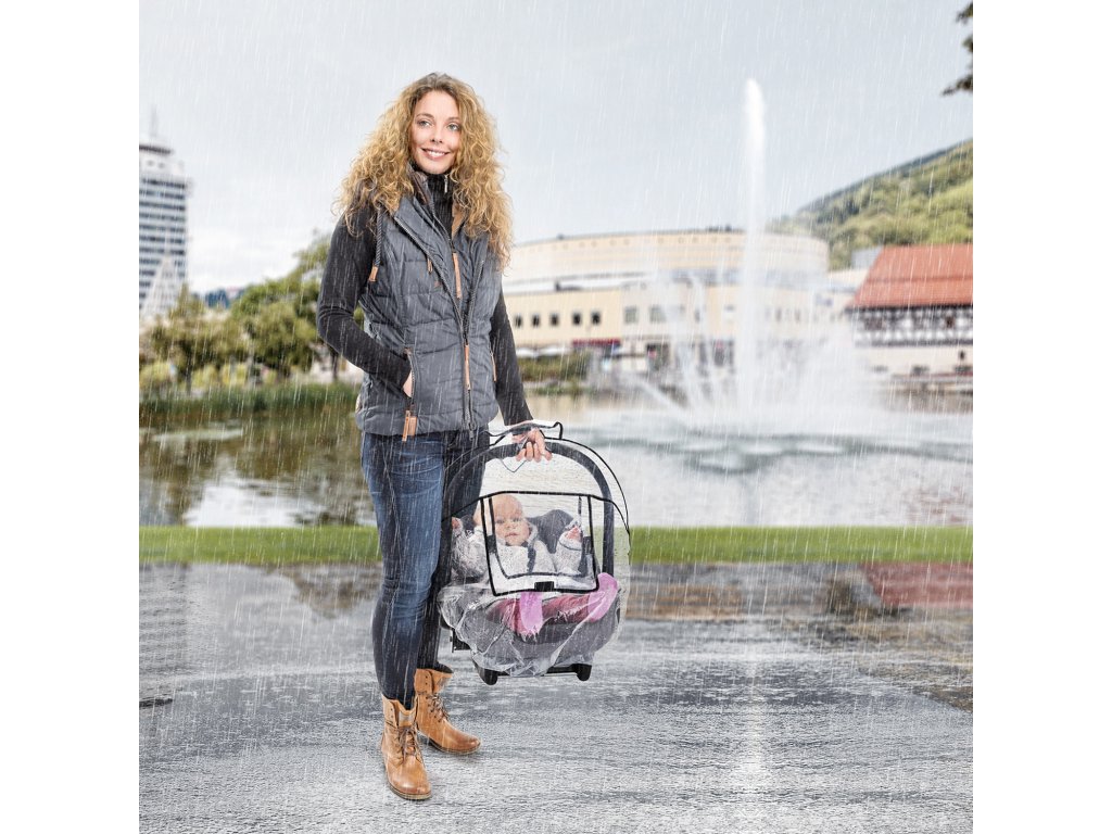 Velké otvory pro větrání zajišťují optimální cirkulaci vzduchu, praktický otvor k usnadnění nošení. Pláštěnka je vhodná pro autosedačky skupiny 0 a 0+.
