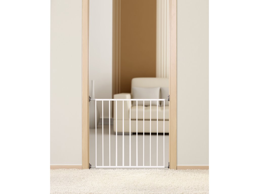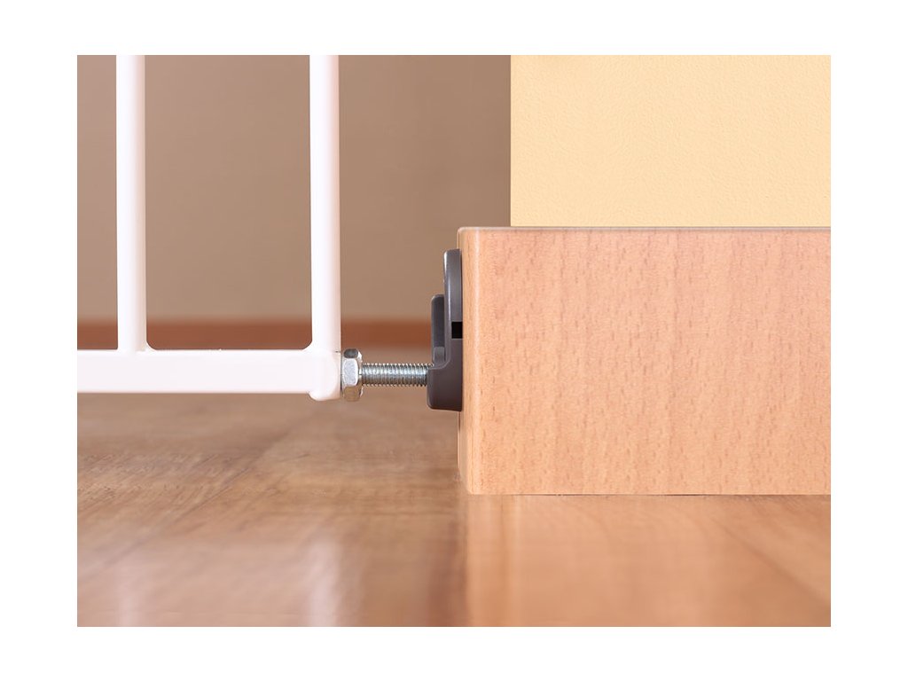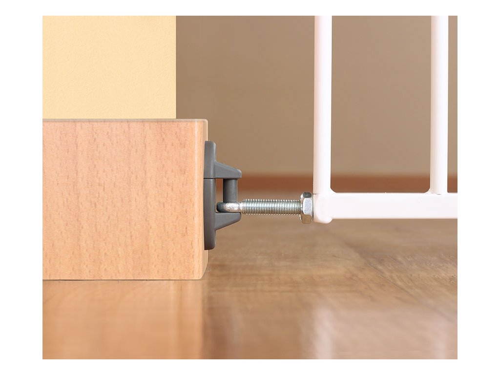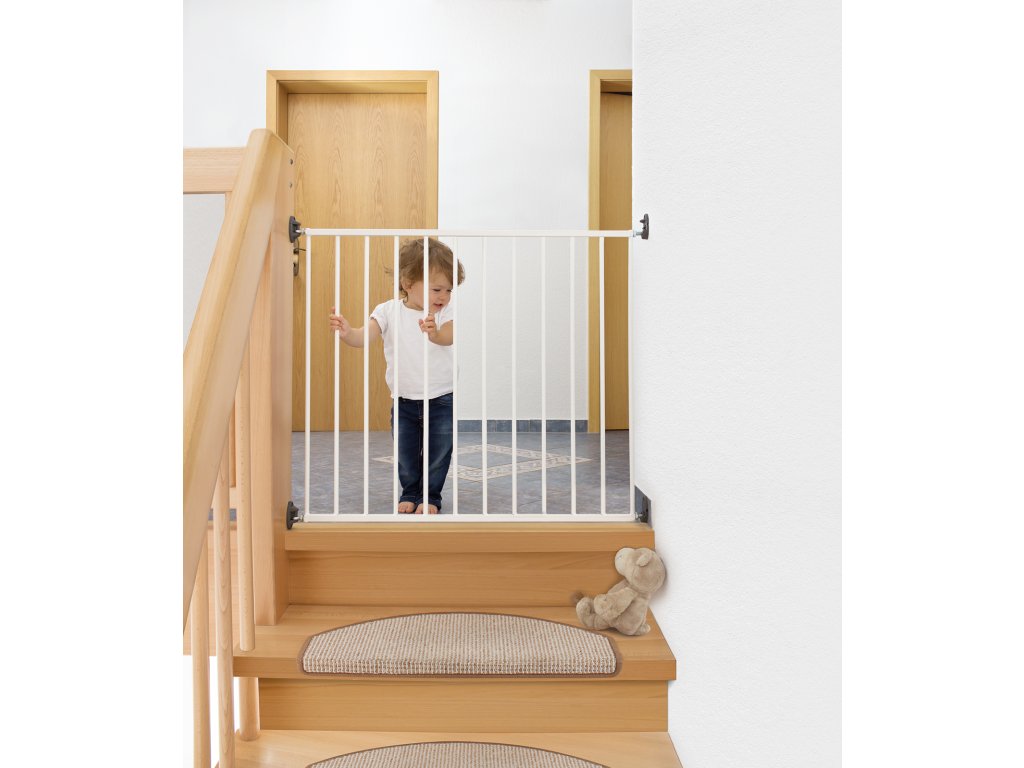 Bezpečnostní zábrana Basic je skvělý pomocník, zajišťující bezpečí Vašich dětí. Je šířkově nastavitelná: pro průchody o šířce od 68 do 106 cm, bezbariérová a vhodná tak především pro horní část schodiště. Při otevření je zachována původní šířka průchodu. Nastavitelné 4-bodové uchycení poskytuje individuální seřízení šířky na horních i spodních úchytných bodech a zábranu je tak zábranu možné použít i na klopených zdech nebo schodišťovém zábradlí.
