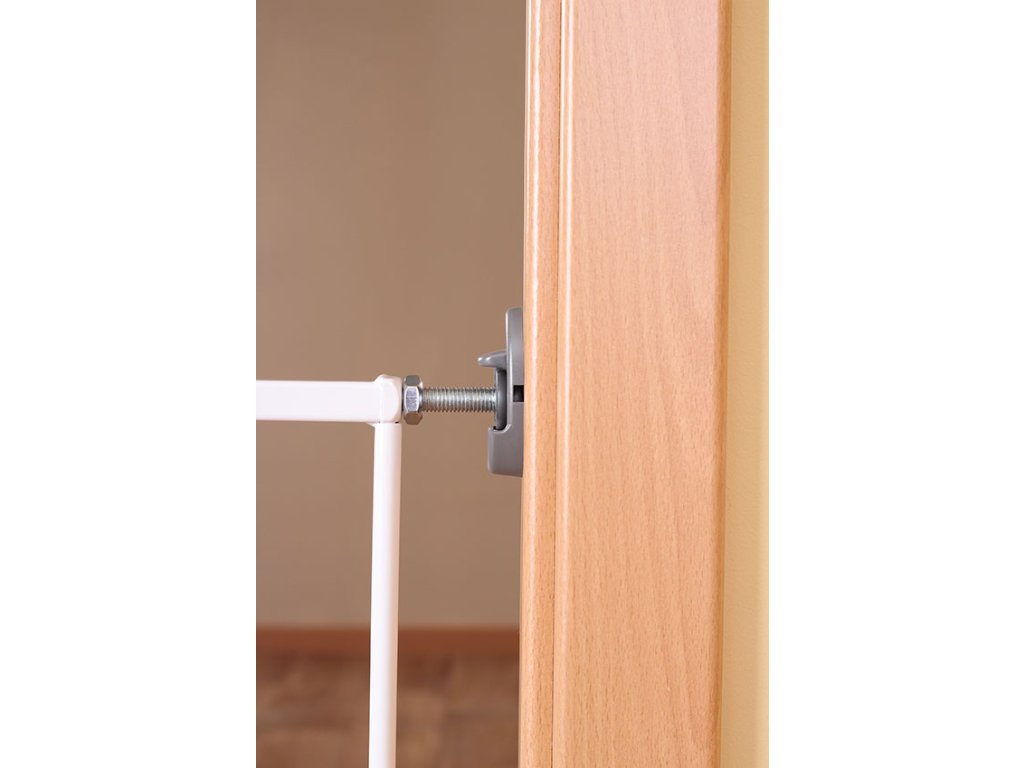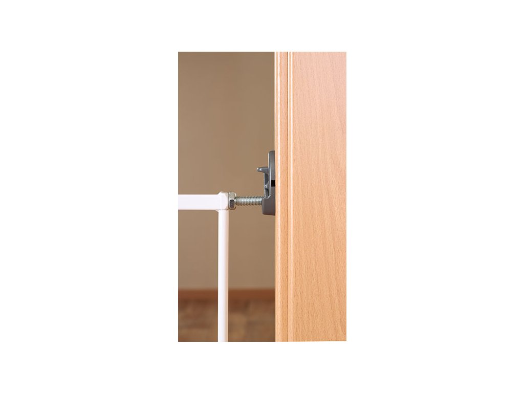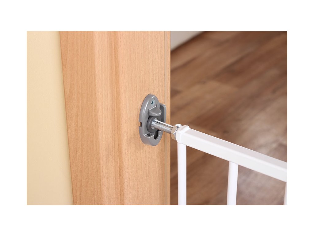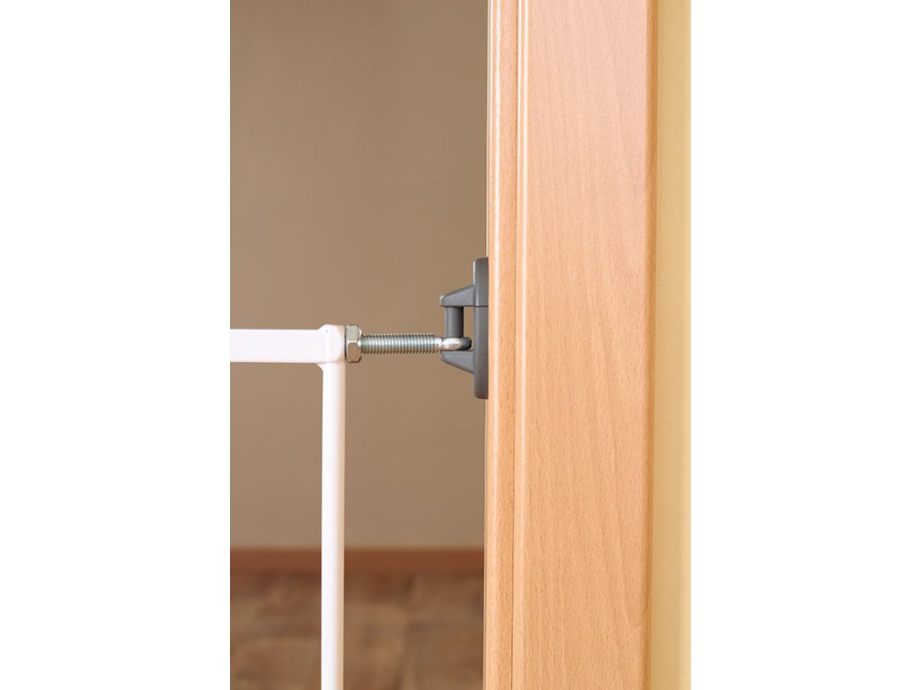 Bezpečnostní zábrana Basic je skvělý pomocník, zajišťující bezpečí Vašich dětí. Je šířkově nastavitelná: pro průchody o šířce od 68 do 106 cm, bezbariérová a vhodná tak především pro horní část schodiště. Při otevření je zachována původní šířka průchodu. Nastavitelné 4-bodové uchycení poskytuje individuální seřízení šířky na horních i spodních úchytných bodech a zábranu je tak zábranu možné použít i na klopených zdech nebo schodišťovém zábradlí.