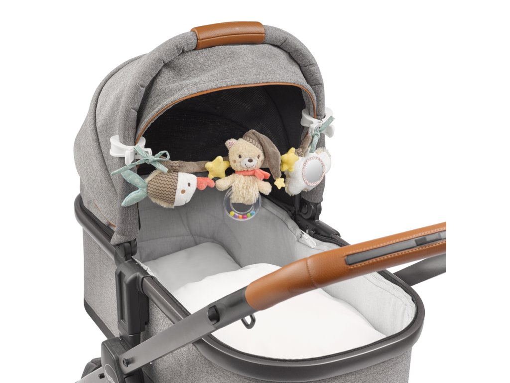 Přívěšky jsou navrženy tak, aby dítě mělo potřebu je zkoumat, objevovat a aby podporovaly motorické dovednosti dítěte a koordinaci rukou a očí. Snadno uchopitelné pro dětské ručičky. Dvě svorky umožnují rychlé, snadné a pružné připevnění ke kočárku, sedáku nebo postýlce.