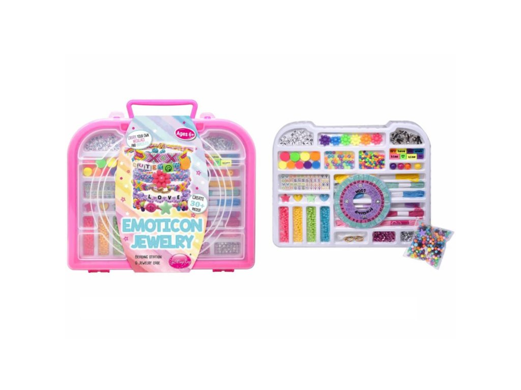 Sada obsahuje korálky různých barev a tvarů, šňůrku a kulatý stav. Praktické balení kufříku suchem a dělenými přihrádkami na korálky.