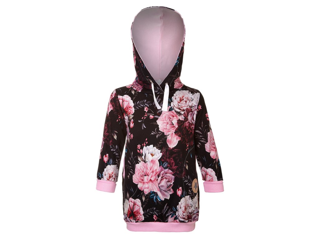 - Díky kapuci a kapsám působí ležérně, motiv květů dodá šatům šmrnc