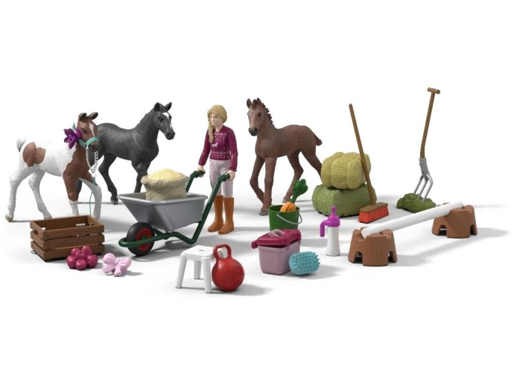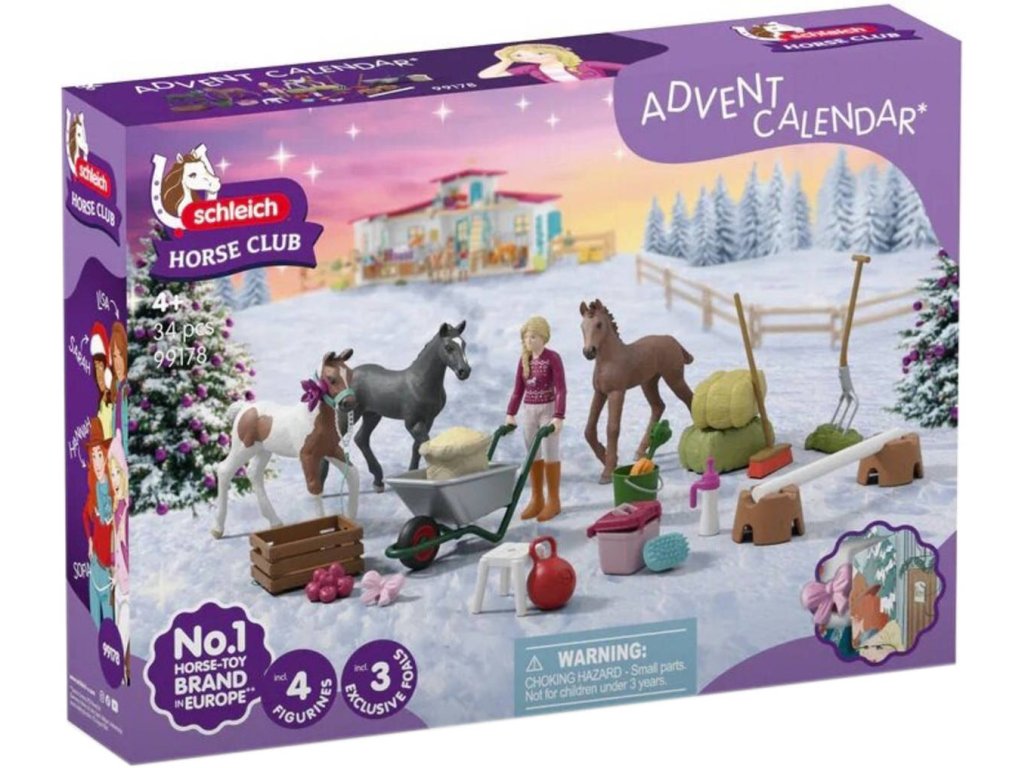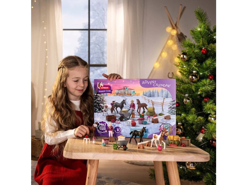 Adventní kalendář HORSE CLUB od Schleich® skrývá za každými dvířky překvapení, které milovníky koní nadchne. Vánoční zázrak – odchov hříběte ukrývá v každém okénku roztomilé vánoční překvapení. Velmi netrpělivě se očekává příchod tří hříbat, která jsou exkluzivně k dispozici v kalendáři. Vše, co Sarah na Lakeside potřebuje pro chov hříbat, najde v kalendáři: dudlík, ohlávku, pytel ovsa, seno, kolečko a mnoho dalšího. Kdo jí pomůže s prací? Adventní kalendář obsahuje tři hříbata (holštýnské, hannoverské, fríské), figurku Sarah s příslušenstvím pro krmení, péči a hru, včetně krmiva, nářadí, ozdob a překážek. Adventní kalendář Schleich® patří do tematického světa HORSE CLUB a je vhodná pro děti od 4 let.