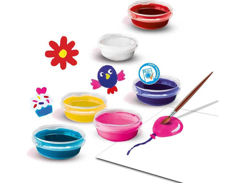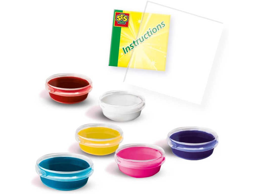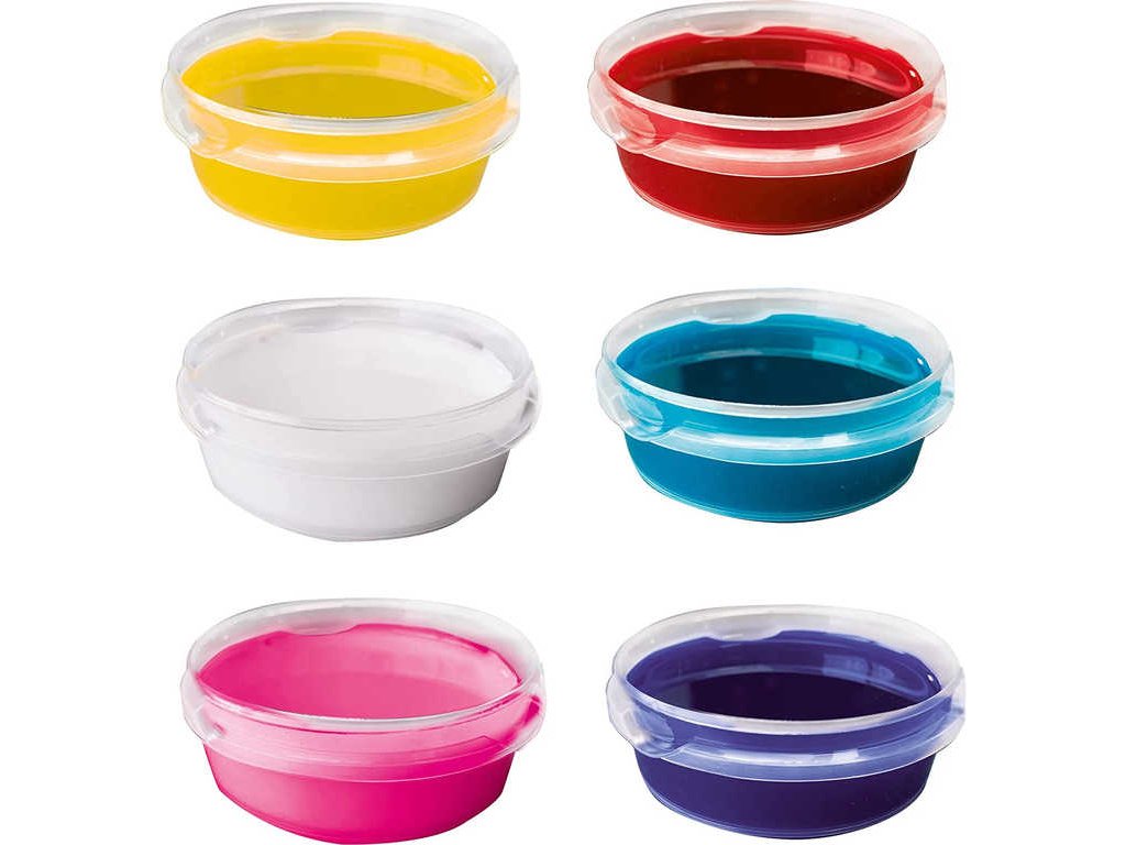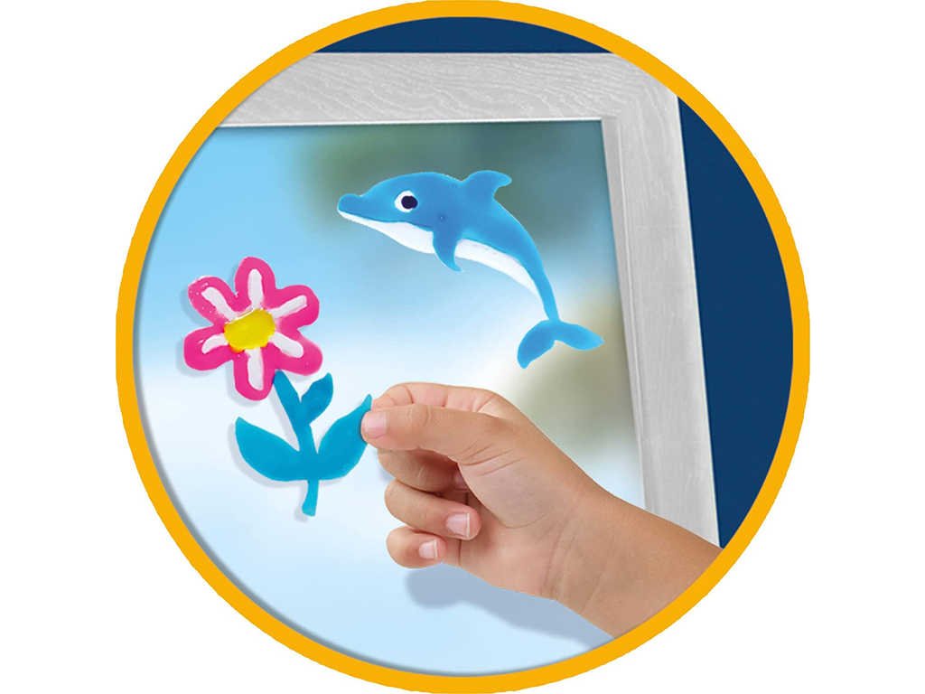 Sada slupovacích barev na sklo. Vytvořený obrázek (nálepky na okno) můžete po zaschnutí přenést a umístit na okno, zrcadlo, sklenici, dlaždici nebo jiné hladké podklady. Barvy lze bez problémů vyprat. Vytvořte si