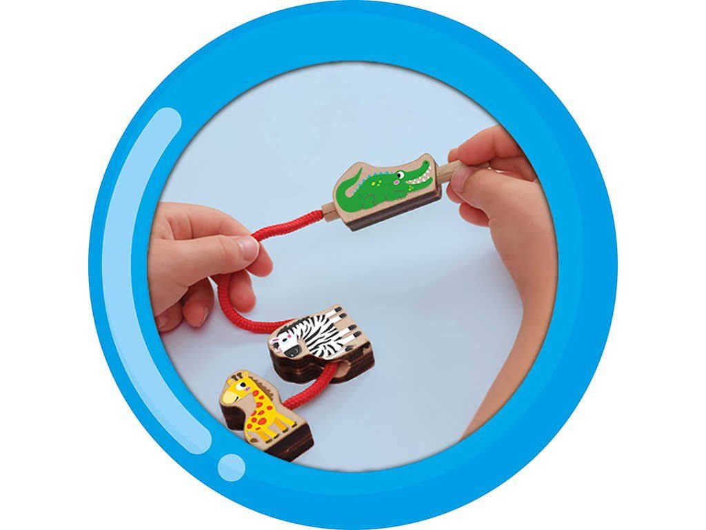 Dokážete navléknout roztomilá zvířátka ve správném pořadí na korálkový náhrdelník? Tvary jsou vyrobeny ze skutečného dřeva a lze je navlékat ve správném pořadí pomocí karet s pokyny. Dokážete vytvořit