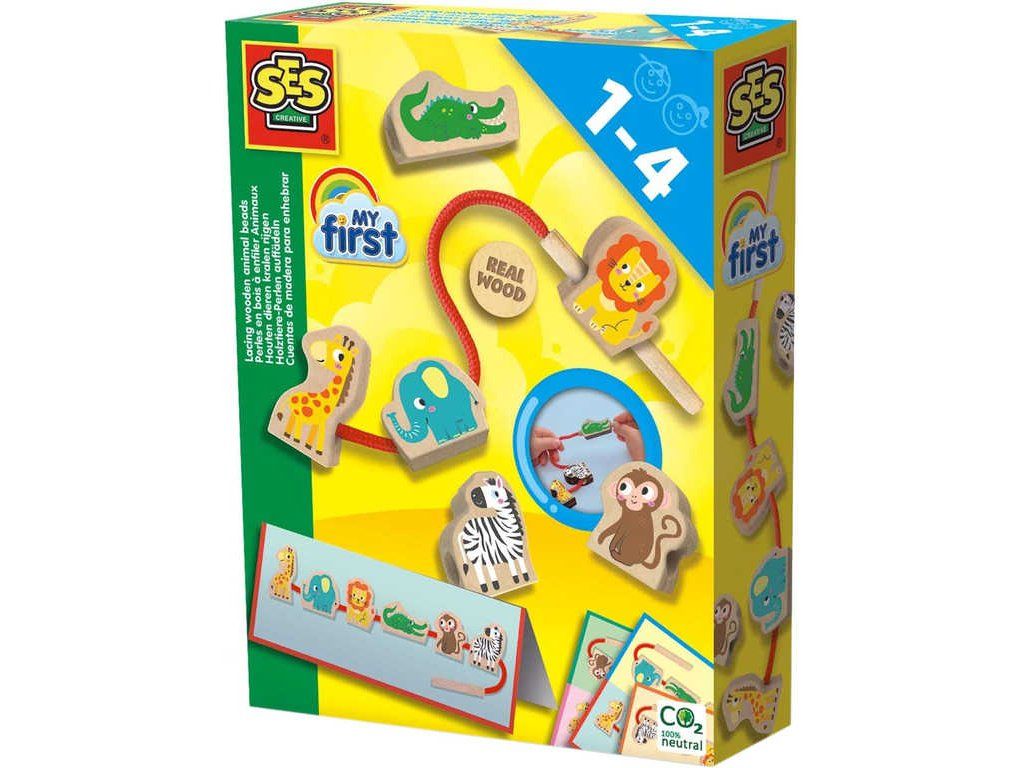 SES CREATIVE DŘEVO Baby Moje první navlékání dřevěných korálků zvířátek