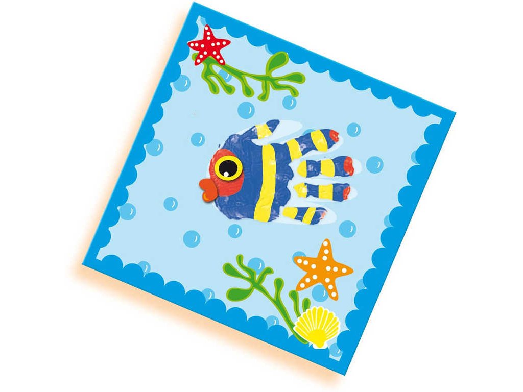 Obsah balení: 3 barvy pro malování prsty, 11 předtištěných karet, štětec, extra tištěné detaily