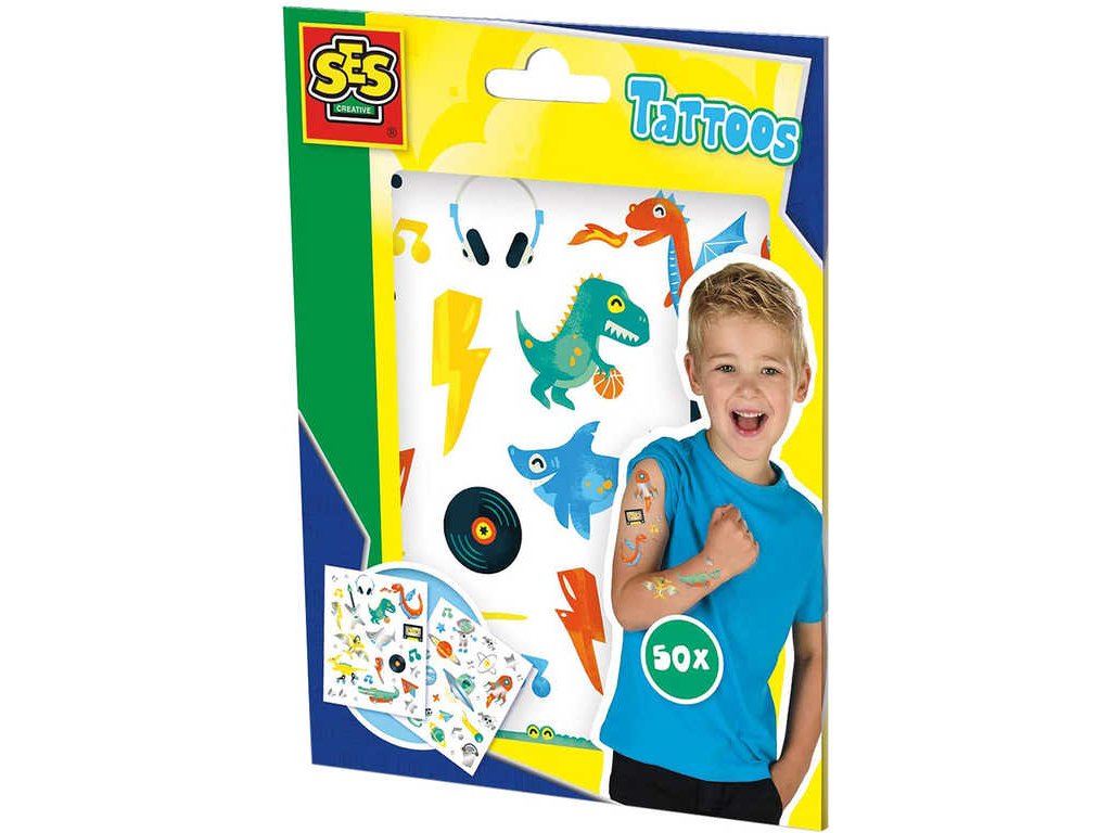 SES CREATIVE Tetování pro děti 2 archy set 50ks tetovačky pro kluky