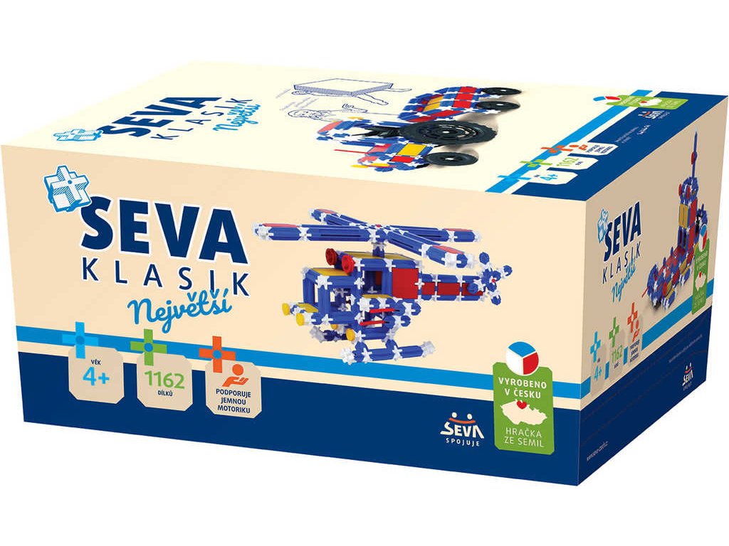 Seva KLASIK Největší - XXL velké balení stavebnice od Visty, ze které si můžete sestavit např. nejrůznější modely dopravních prostředků podle vaší fantazie nebo vyobrazení na krabici.
