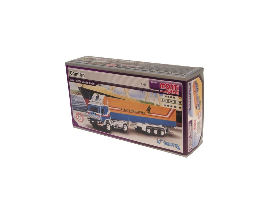 Model Monti System MS č.08.1 - Camion je tahač Liaz s návěsem. Liaz Monti System MS 08.1 v měřítku 1:48 patří do řady modelů Monti System STANDARD, tedy mezi středně složité stavebnice.