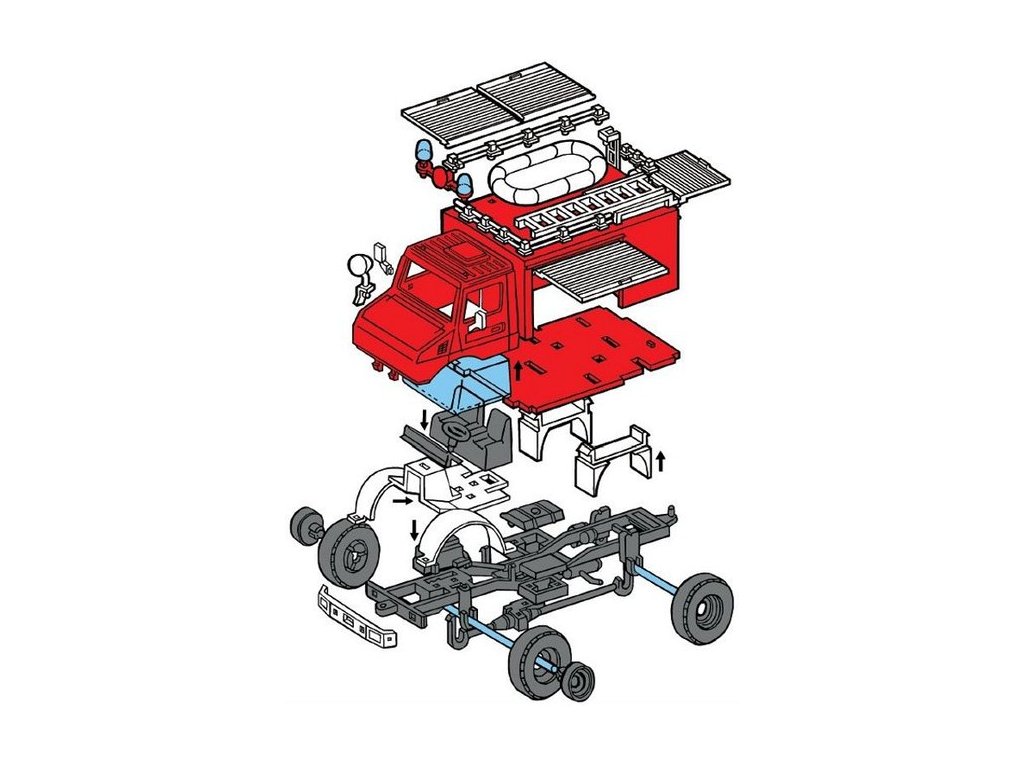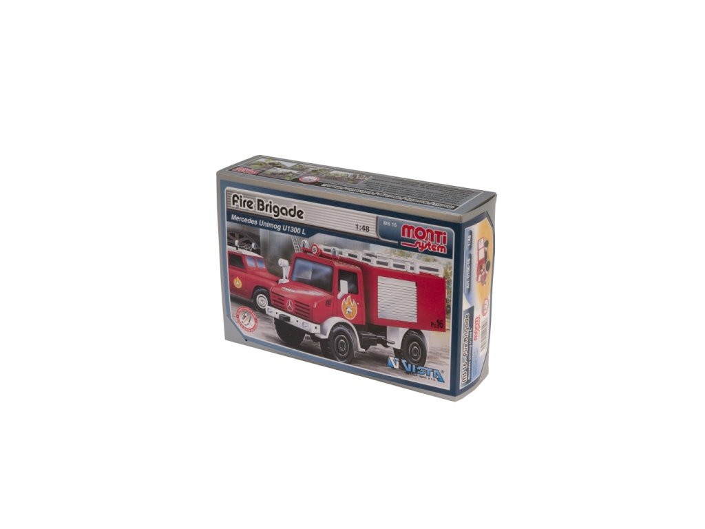 Model Monti System MS č.16 - Fire Brigade je hasičský vůz Mercedes Unimog. Mercedes Unimog Monti System MS 16 v měřítku 1:48 patří do řady modelů Monti System STANDARD, tedy mezi středně