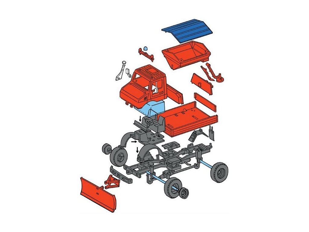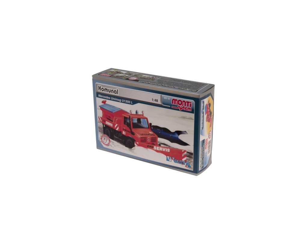 Model Monti System MS 18 - Communal je zimní sypač Mercedes Unimog. Mercedes Unimog Monti System MS 18 v měřítku 1:48 patří do řady modelů Monti System STANDARD, tedy mezi středně