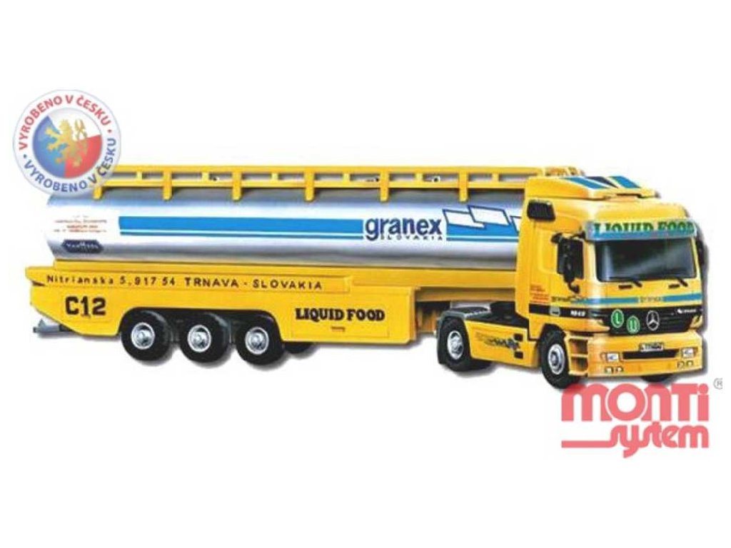 Model Monti System MS č.55 - Liquid Food je tahač Mercedes-Benz Actros s cisternovým návěsem. Mercedes Actros Monti System MS 55 v měřítku 1:48 patří do řady modelů Monti System PROFI,