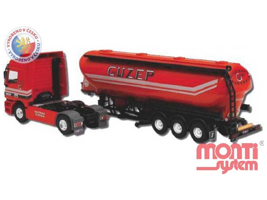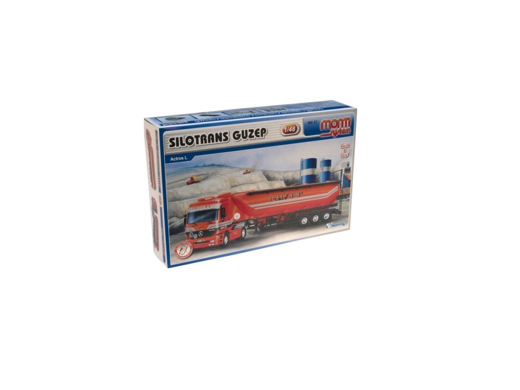 Model Monti System MS č.57 - Silotrans GUZEP je tahač Mercedes-Benz Actros s návěsem firmy Guzep. Mercedes Actros Monti System MS 57 v měřítku 1:48 patří do řady modelů Monti System PROFI, tedy