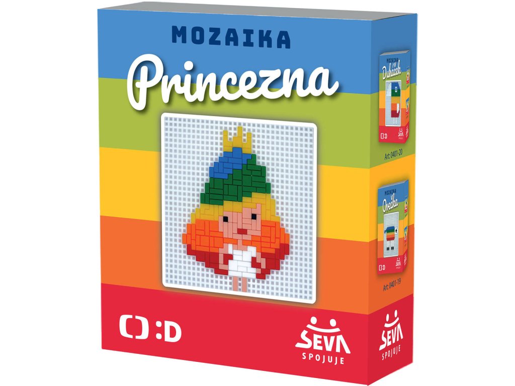 Seva barevná duhová mozaika Princezna v licenci TV Déčko. Součástí bílá podložka + 338 dílků.