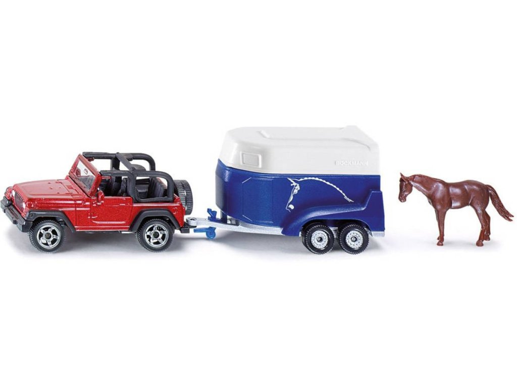 Jeep s přívěsem pro koně je ideální pro děti, které milují terénní auta i koně. Auto, přívěs a kůň splňují nejvyšší kvalitativní i bezpečnostní požadavky. Auto je téměř výhradně vyrobeno ze zinku, což z něj činí robustní a odolný výrobek. Koník a doplňky u auta a přívěsu jsou vyrobeny z plastu. Přívěs pro koně má otvírací zadní plošinu pro pohodlný nástup. Přívěs lze jednoduše připojit k autu a po odpojení opět pevně stojí. Sada obsahuje 3 díly.