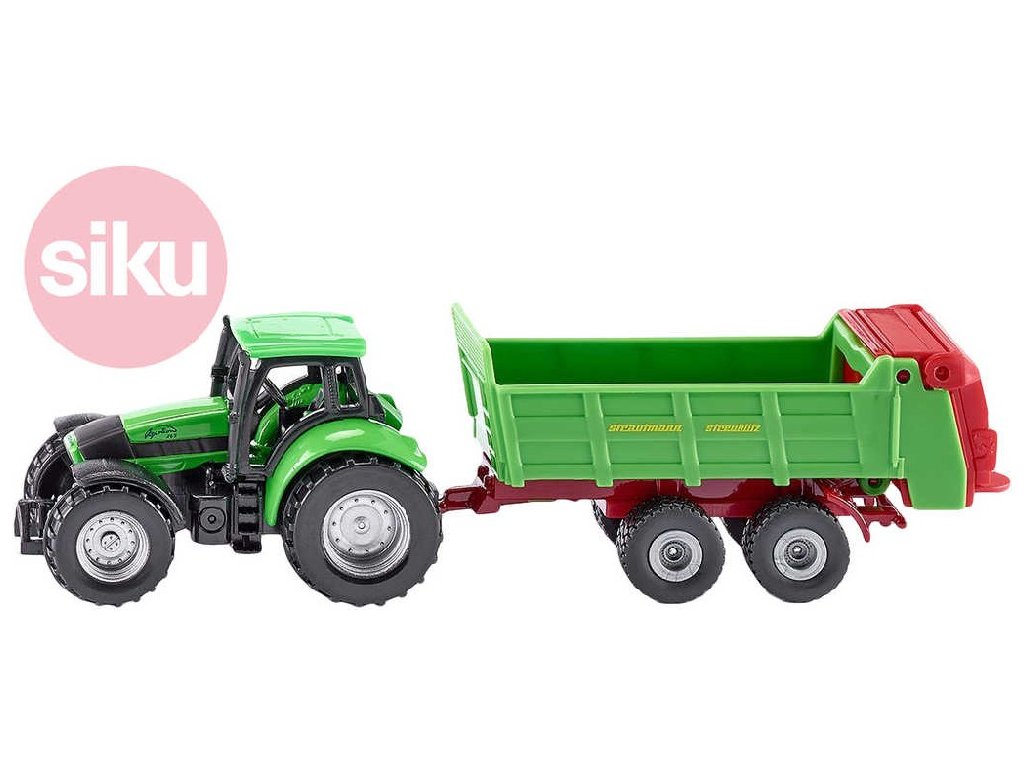 Detailně zpracovaný kovový model traktoru s vlečkou od renomovaného německého výrobce Siku, který nadchne všechny zemědělské techniky.