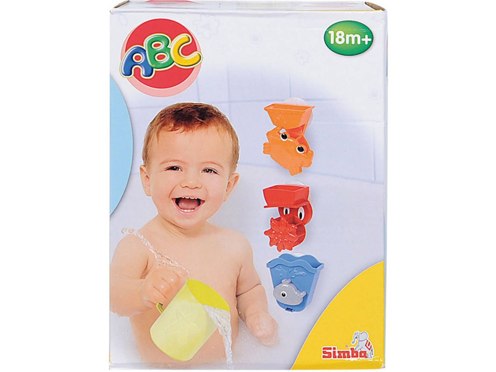 Se sadou ABC na hraní do vany už ve vaně nikdy nebude nuda. Tři zvířátka lze připevnit k vaně přísavkou nad sebe nebo vedle sebe. Voda se nalije do vodních kol a trychtýřů s kelímkem a koupací zábava začíná. Vhodné pro děti od 18 měsíců.