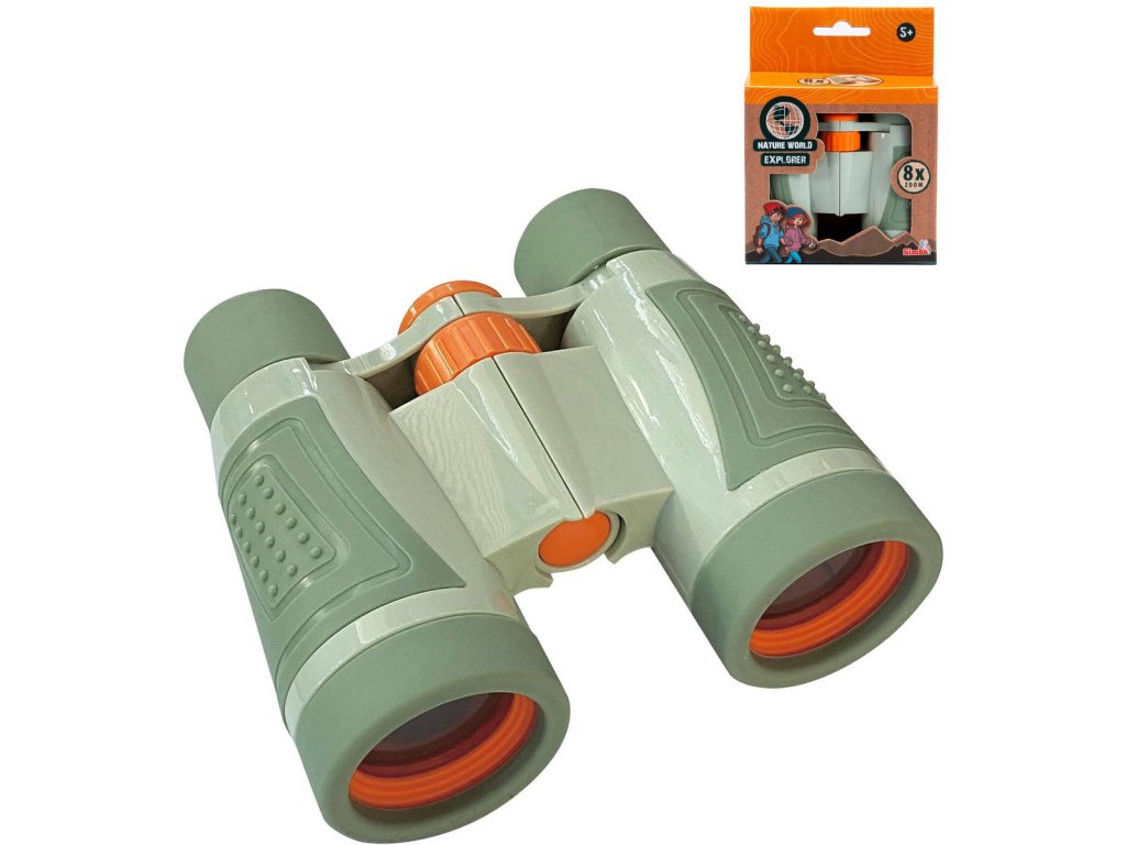 Dalekohled se zvětšením až 8x, se šňůrkou na krk. Velikost dalekohledu 11 cm.