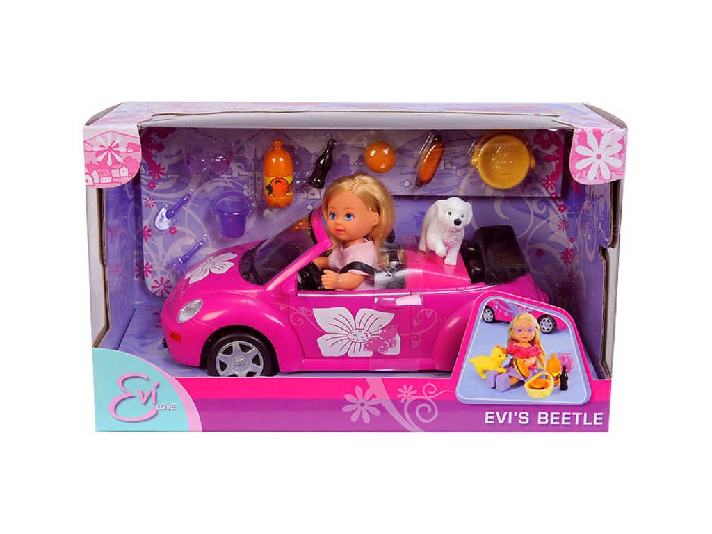 Panenka Evička v novém autě New Beetle jede se svým pejskem na výlet!