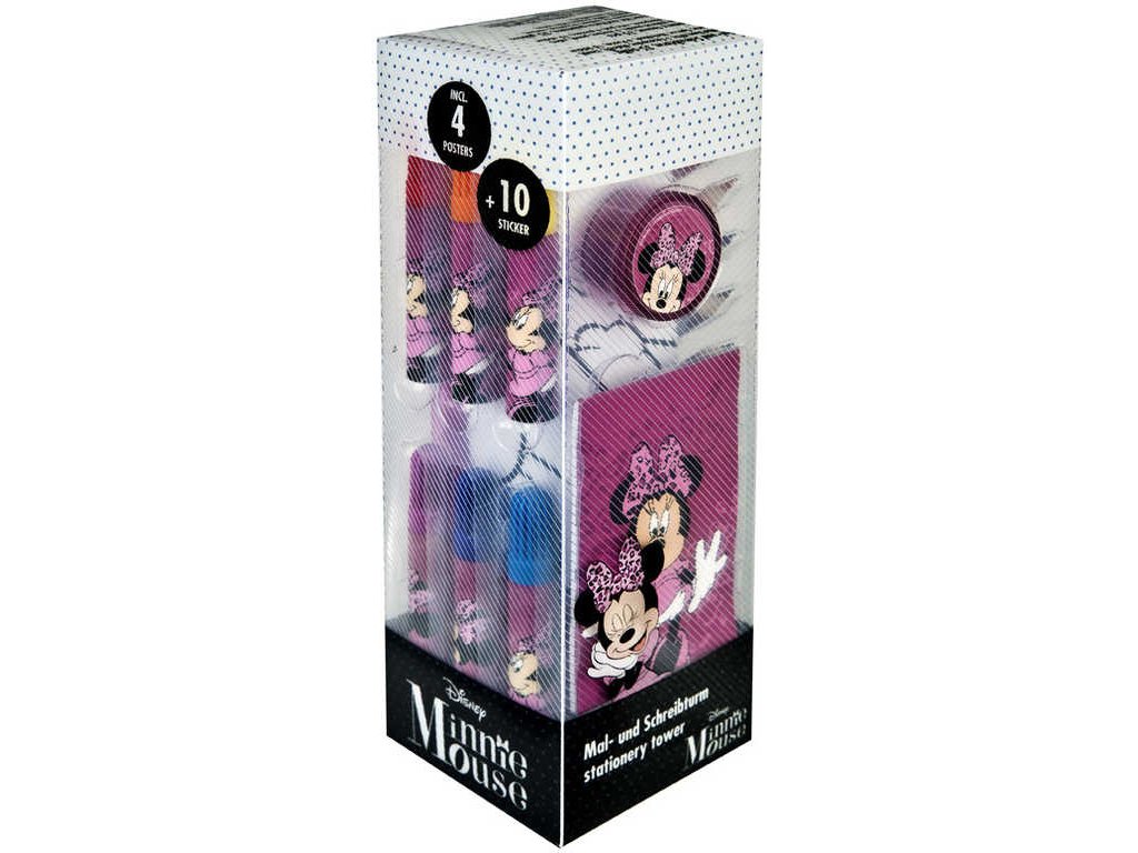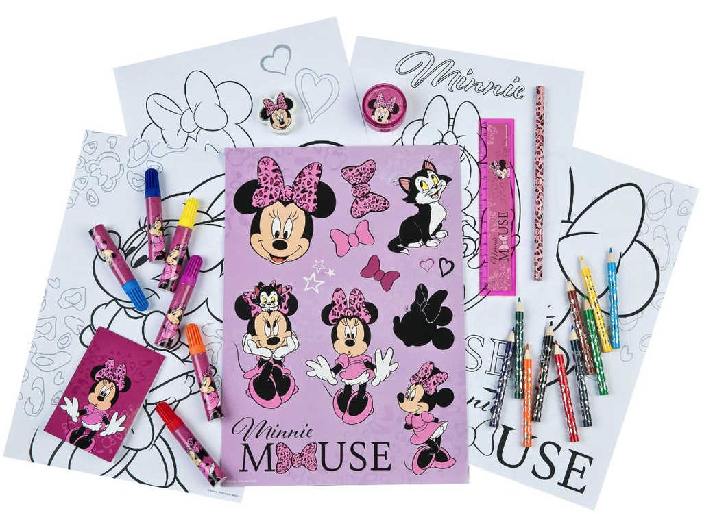 Velká kreativní sada, dětské výtvarné potřeby s motivem myšky Minnie. Balení obsahuje barevné pastelky, fixy, omalovánky, samolepky a další praktické doplňky. S tímto setem se určitě nudit nebudeš.