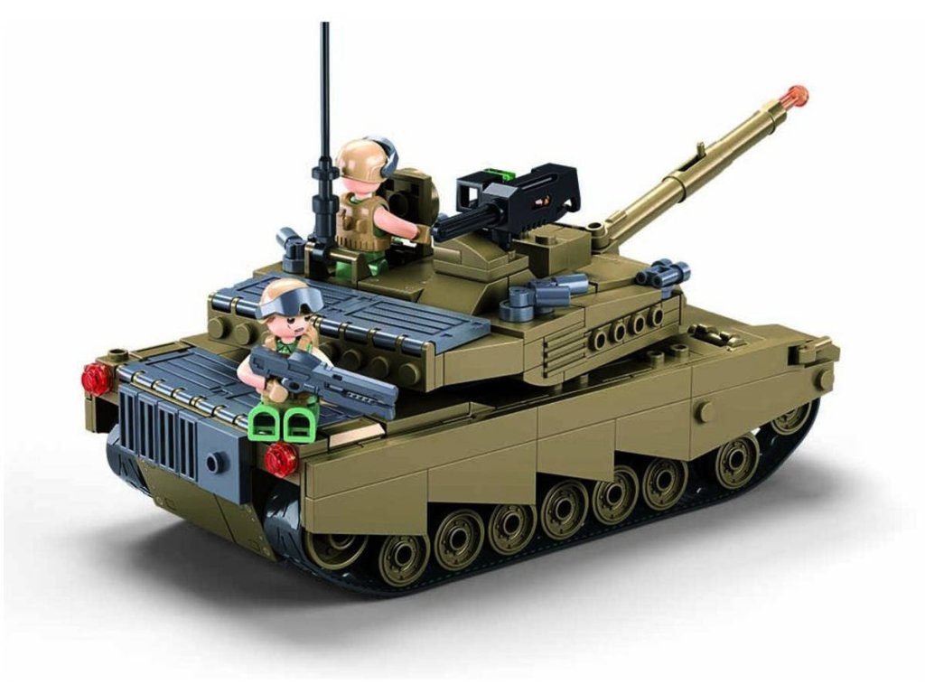 SLUBAN M38-B1256 Bitevní tank M1, z edice Army. Kvalitní plastová stavebnice. 322 dílků + 2 figurky. Lze kombinovat s většinou ostatních známých stavebnic.