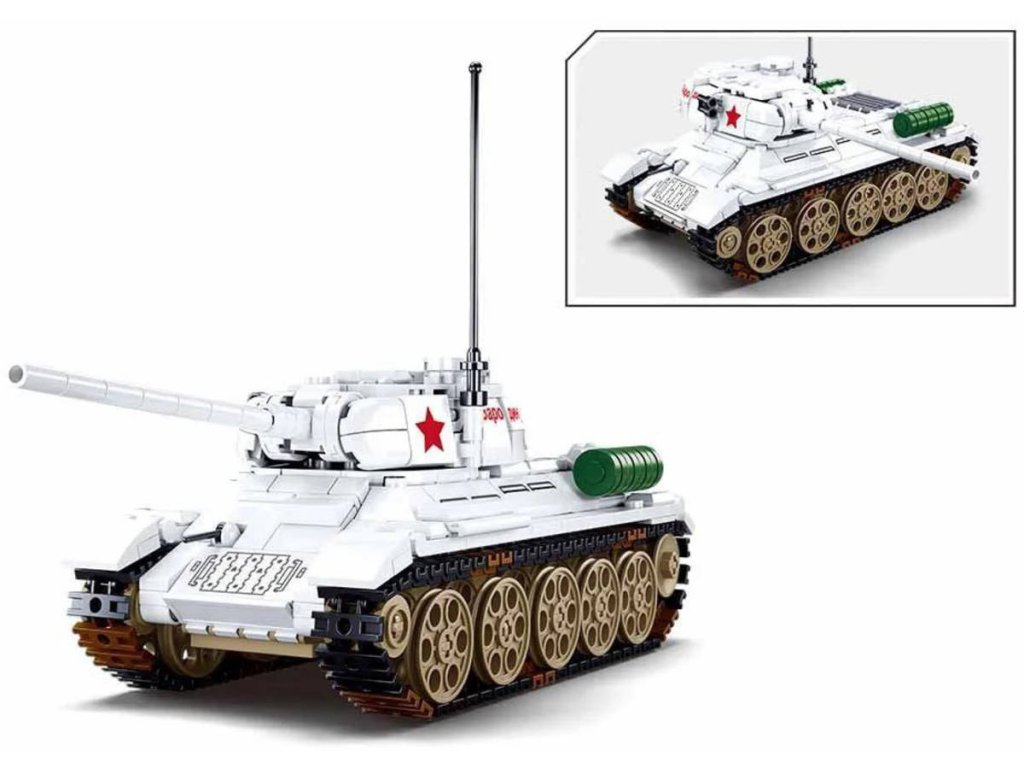 Další tank ze sady Army, Bitva o Budapešť. Bílý tank T-34/85. Stavebnice obsahuje také 2 figurky. Perfektní hračka nejen pro malé vojáky. Přiložen obrazový návod k sestavení.