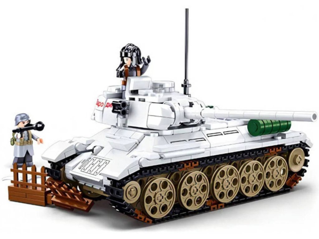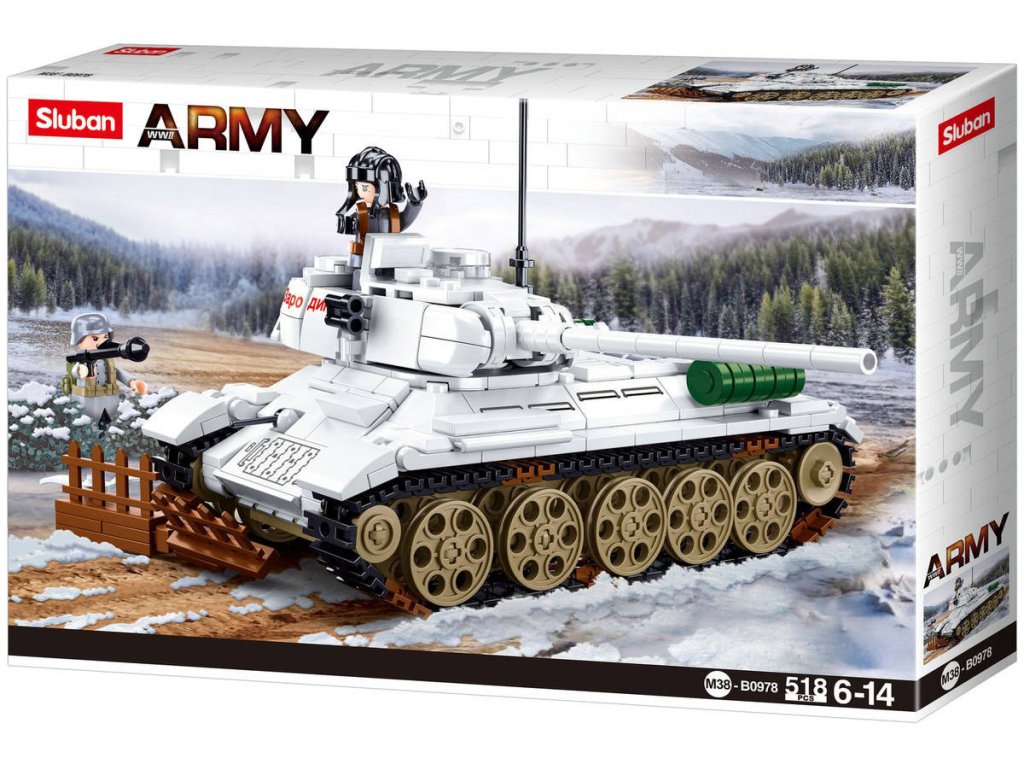 SLUBAN Army (M38-B0978) Bitva o Budapešť: Bílý tank T-34/85 (2. světová válka). Kvalitní plastová stavebnice. Lze kombinovat s většinou ostatních známých stavebnic. Součástí 2 figurky.