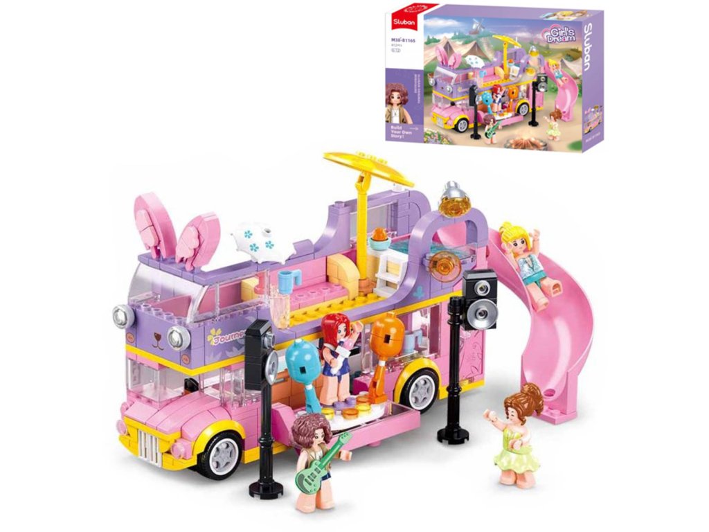 SLUBAN Girls Dream (M38-B1165) Hudební dvoupatrový obytný vůz. Kvalitní plastová stavebnice. Lze kombinovat s většinou ostatních známých stavebnic. Součástí 4 figurky.