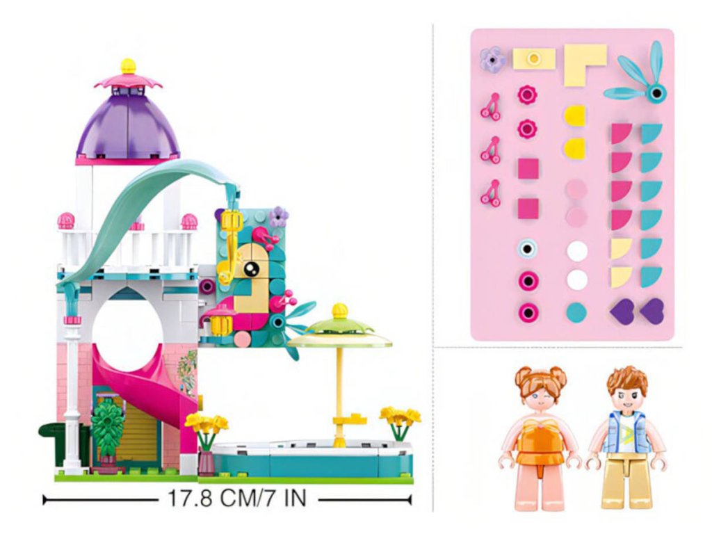 SLUBAN Girls Dream (M38-B0971) Domek se skluzavkou. Kvalitní plastová stavebnice. Lze kombinovat s většinou ostatních známých stavebnic. Součástí 2 figurky.