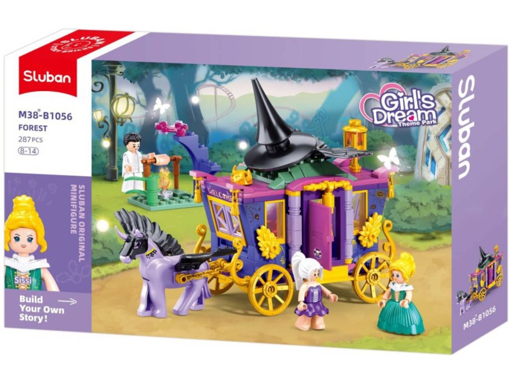 SLUBAN M38-B1056 Čarodějky: Kočár s jednorožcem, z edice Girls Dream. Kvalitní plastová stavebnice. 287 dílků + 4 figurky. Lze kombinovat s většinou ostatních známých stavebnic.