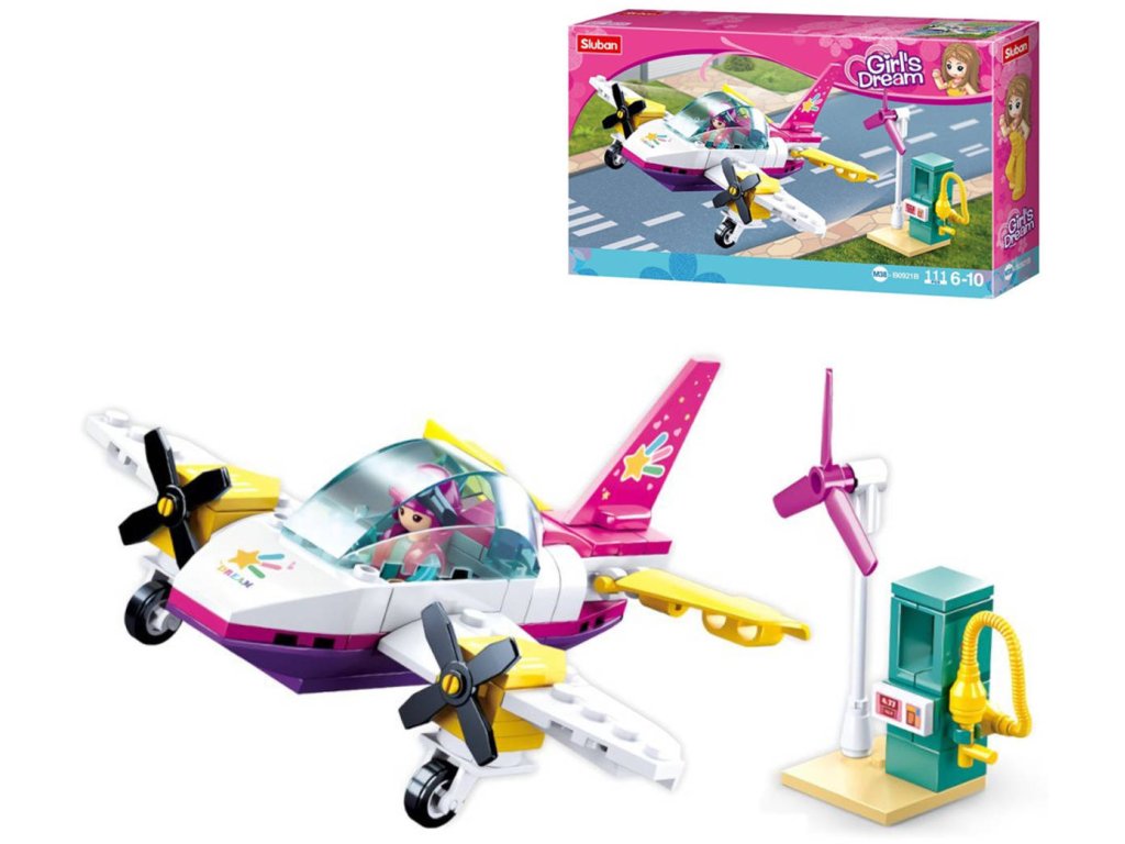 SLUBAN Girls Dream (M38-B0921B) Soukromé letadlo. Kvalitní plastová stavebnice. Lze kombinovat s většinou ostatních známých stavebnic. Součástí 1 figurka.