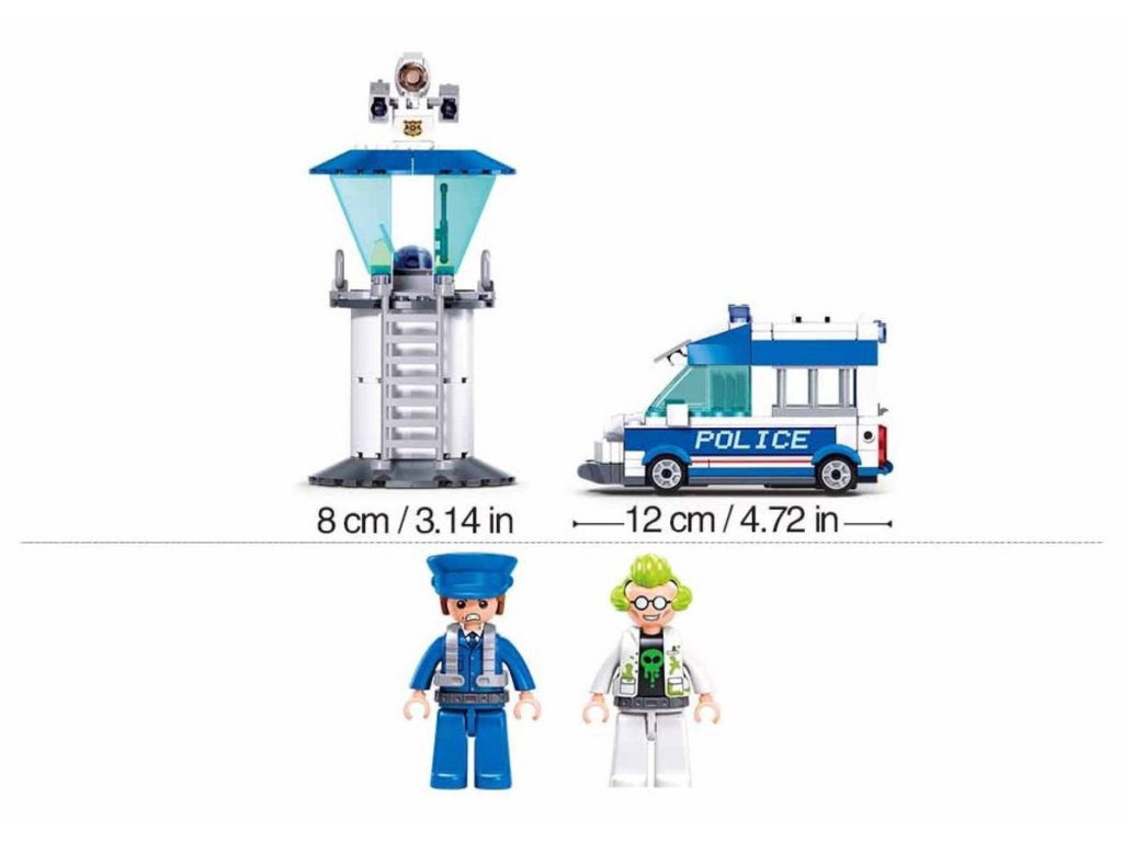 Stavebnice představuje ideální doplněk pro každého malého policistu. Skládá se z 245 dílků a obsahuje 2 figurky (policista a bandita), které umožňují vytvářet různé scénáře policejních akcí. Figurky jsou vybaveny otáčivými a výkyvnými částmi těl, což zvyšuje interaktivitu a zábavu při hře. Tento větší policejní pickup je vybaven natahovacím mechanismem a solárními panely, což přidává na autentičnosti a moderním vzhledu. Zadní část vozu slouží k převozu vězňů a je vybavena odnímatelnou střechou a zadními dveřmi pro snadný přístup. Součástí stavebnice je také policejní hlídková věž s moderní technologií, včetně ovládání dvojitého malého kanonu na střeše věže, což obohacuje možnosti hry.