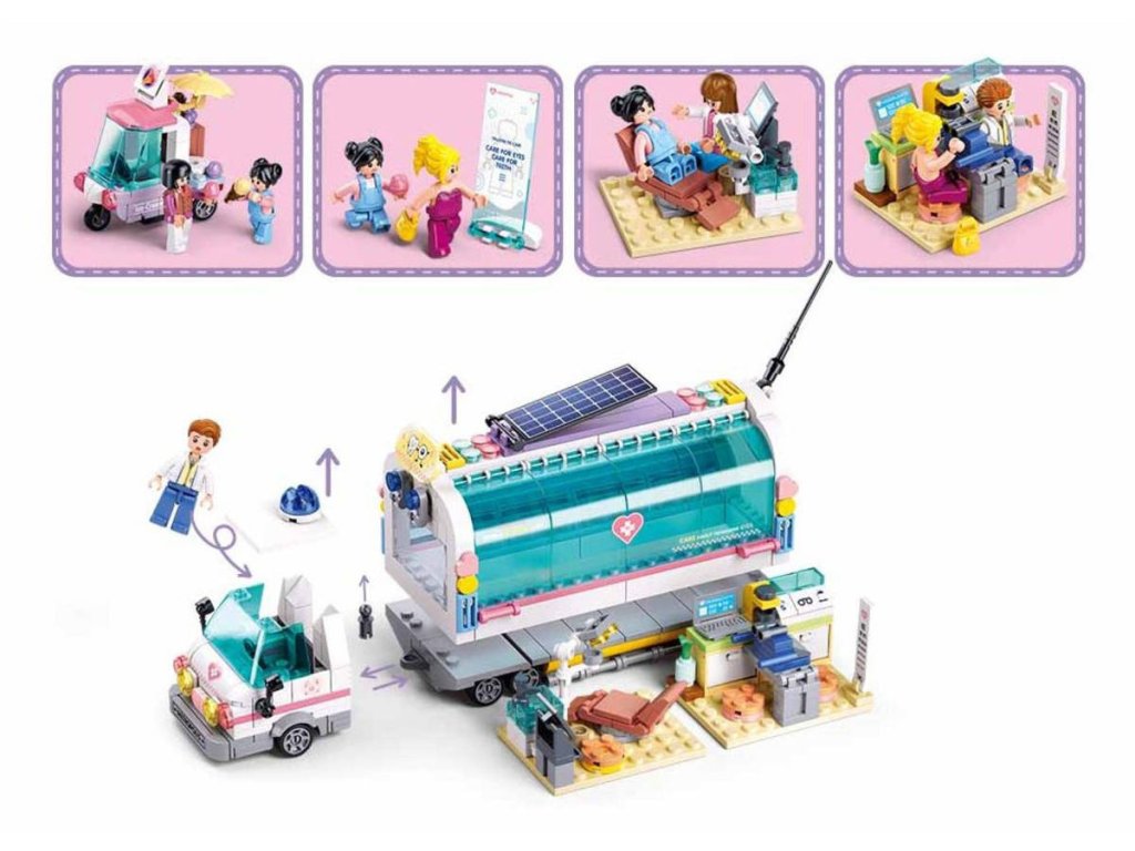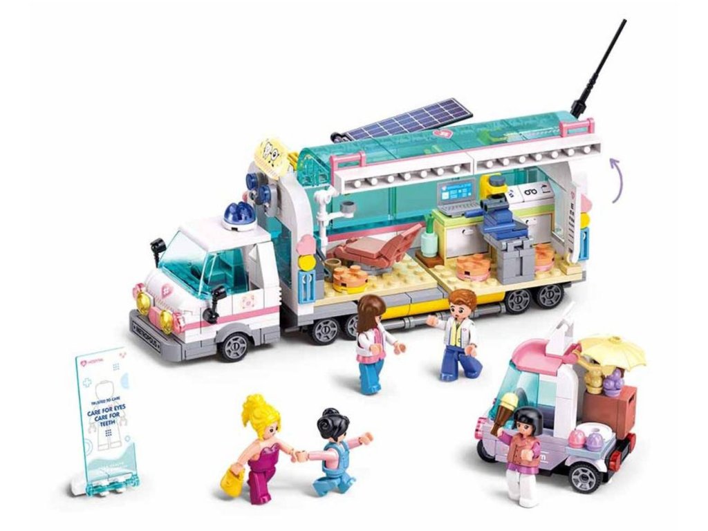 Stavebnice je skvělou volbou pro malé zdravotníky od 6 let, kteří si chtějí užít zábavné a interaktivní hraní. Tato mobilní ošetřovna, která je tažená za kabinou, má celkovou délku 21,4 cm a obsahuje 477 dílků, včetně moderních přístrojů pro ošetření. Děti se mohou těšit na pět figurek, mezi kterými jsou dva lékaři, dva pacienti a jedna prodejkyně zmrzliny, která má k dispozici trojkolku jako pojízdný stánek. Ošetřovna je plně vybavená a nabízí bohaté herní možnosti, které podporují kreativitu a rozvoj sociálních dovedností v zábavném prostředí, kde si děti mohou představovat, jak se starají o zdraví ostatních.