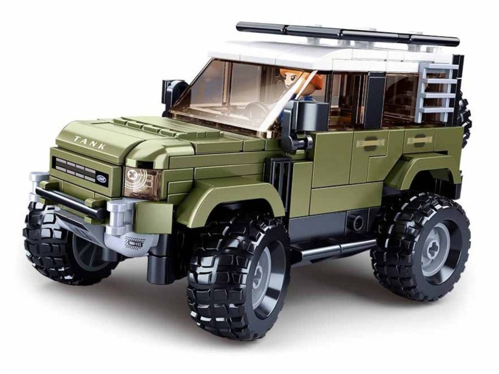 Anglický SUV vůz je stavebnice z kolekce Sluban Model Bricks. Terénní auto v zelené barvě je po sestavení dlouhé 16cm.