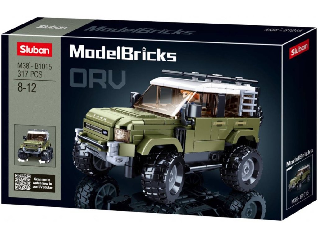 SLUBAN Model Bricks (M38-B1015) Automobil anglický vůz SUV. Model auta. Kvalitní plastová stavebnice. Lze kombinovat s většinou ostatních známých stavebnic. Součástí 1 figurka.
