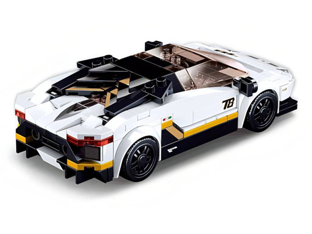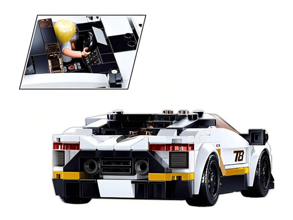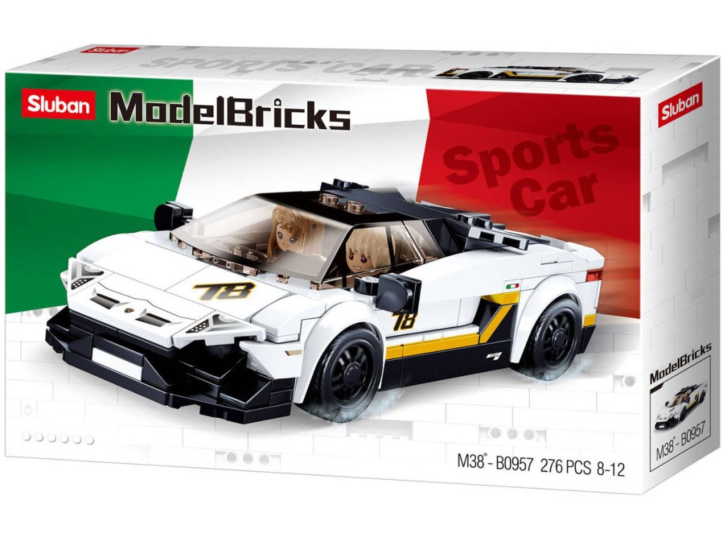 SLUBAN Model Bricks (M38-B0957) Auto italský bílý sportovní vůz. Model auta. Kvalitní plastová stavebnice. Lze kombinovat s většinou ostatních známých stavebnic. Součástí 2 figurky.