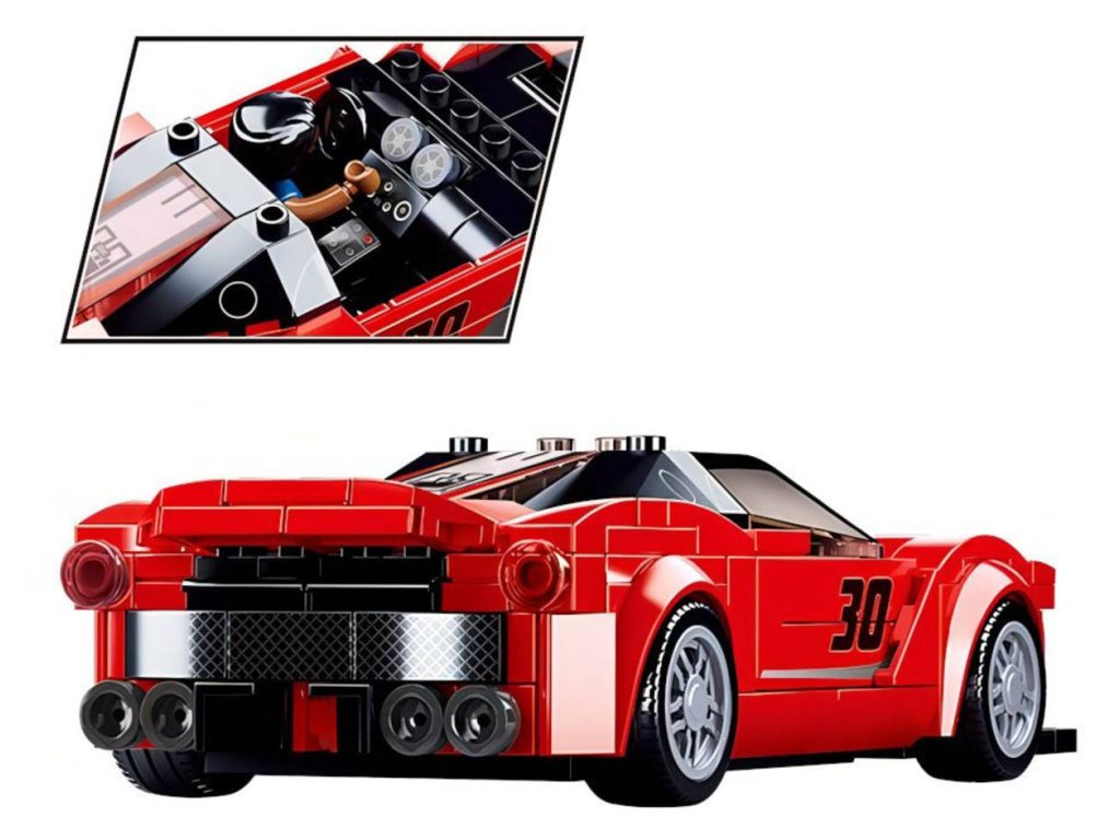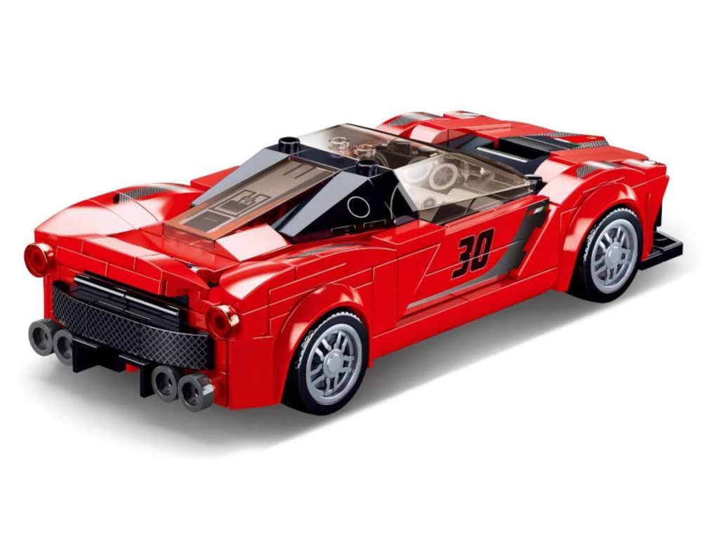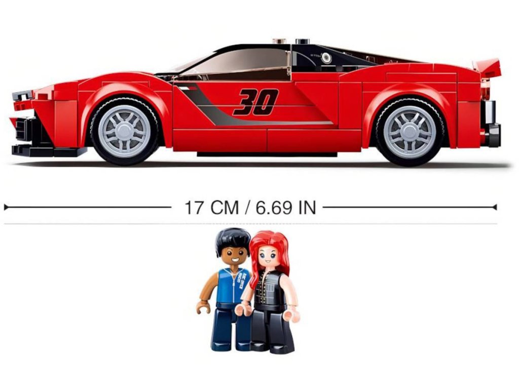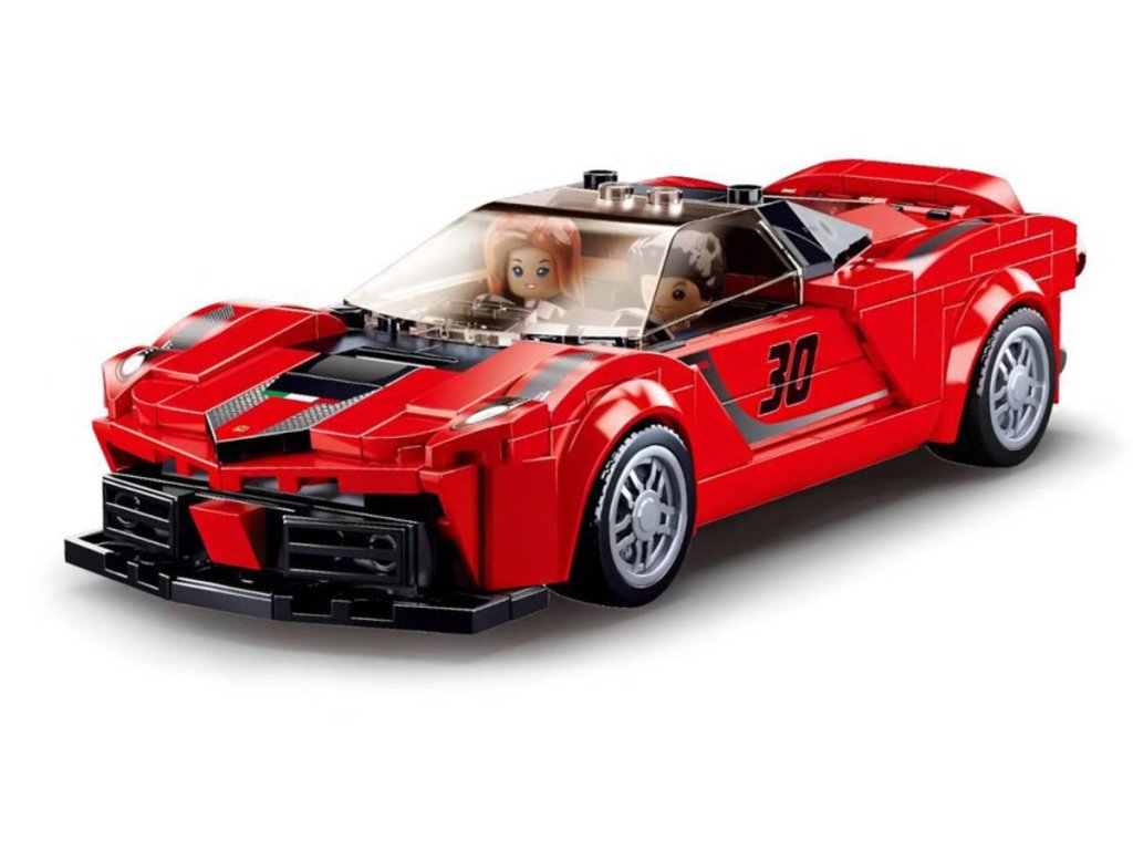 SLUBAN Model Bricks (M38-B0955) Auto červený italský sportovní vůz. Model auta. Kvalitní plastová stavebnice. Lze kombinovat s většinou ostatních známých stavebnic. Součástí 2 figurky.