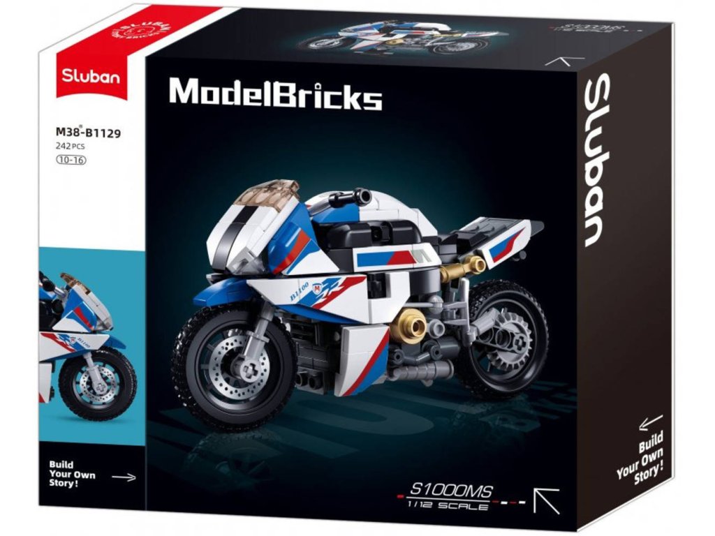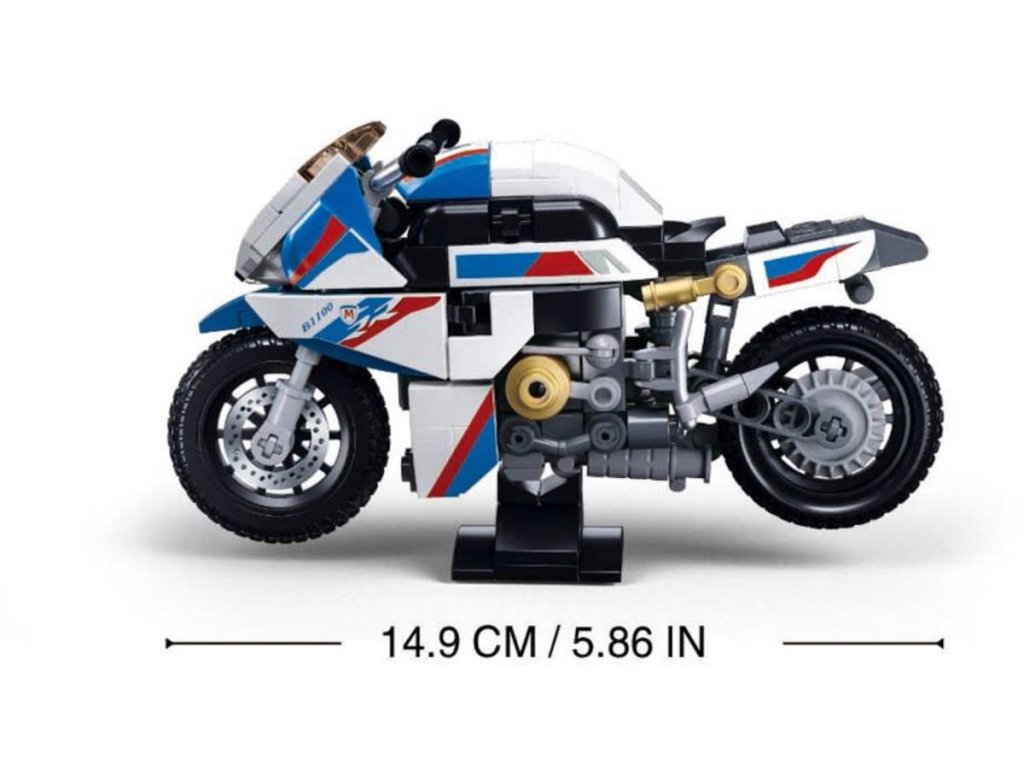 Stavebnice Sluban Model Bricks M38-B1129 představuje model motorky 1000RR v měřítku 1:12, který je součástí nové řady šesti motocyklových modelů od Sluban. S téměř 15 cm na délku po sestavení a stylovým designem v bílé barvě s modro-červenými prvky je tento model atraktivním doplňkem pro všechny fanoušky motocyklů a stavebnic. Model je vybaven malým podstavcem, který umožňuje jeho vystavení.