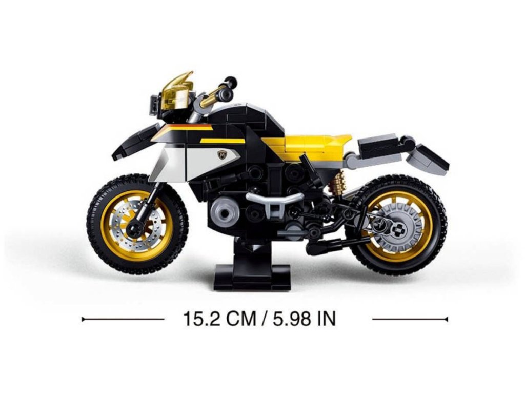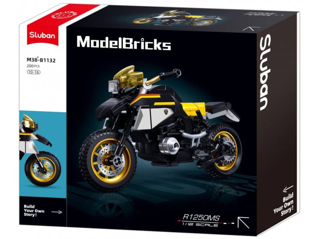 Stavebnice Sluban Model Bricks M38-B1132 přináší model motorky R1250 GS v měřítku 1:12, který je jedním ze šesti nových modelů motorek od Sluban. Sestavený model se může pochlubit 200 dílky a po dokončení měří 15 cm na délku. Motorka zaujme svou černou barvou s žlutými prvky a věrně napodobuje tvar a design originálního stroje s obsahem motoru 1250cc. Malý podstavec, který je součástí balení, umožňuje pohodlné vystavení modelu a zvýraznění jeho dynamického vzhledu. Detailní zpracování modelu R1250 GS nabízí realistický zážitek z sestavování a je skvělým způsobem, jak přiblížit svět motocyklů mladým fanouškům i zkušeným sběratelům.