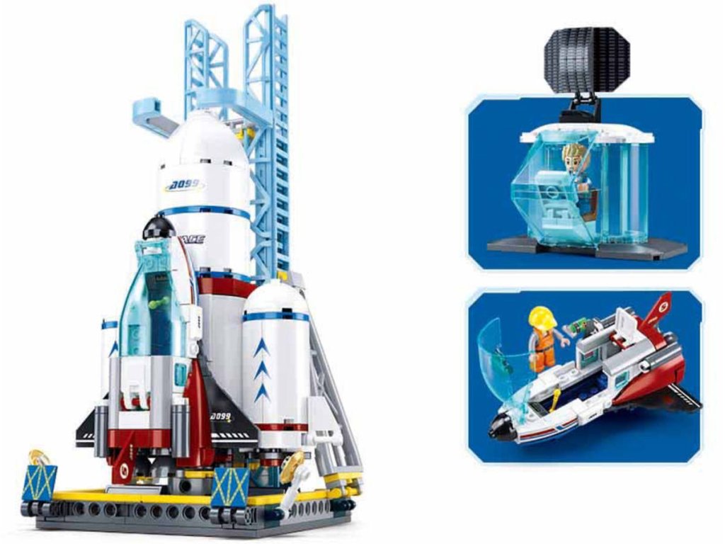 SLUBAN M38-B1199 Středisko pro start raketoplánu, z edice Vesmír. Kvalitní plastová stavebnice. 424 dílků + 4 figurky. Lze kombinovat s většinou ostatních známých stavebnic.